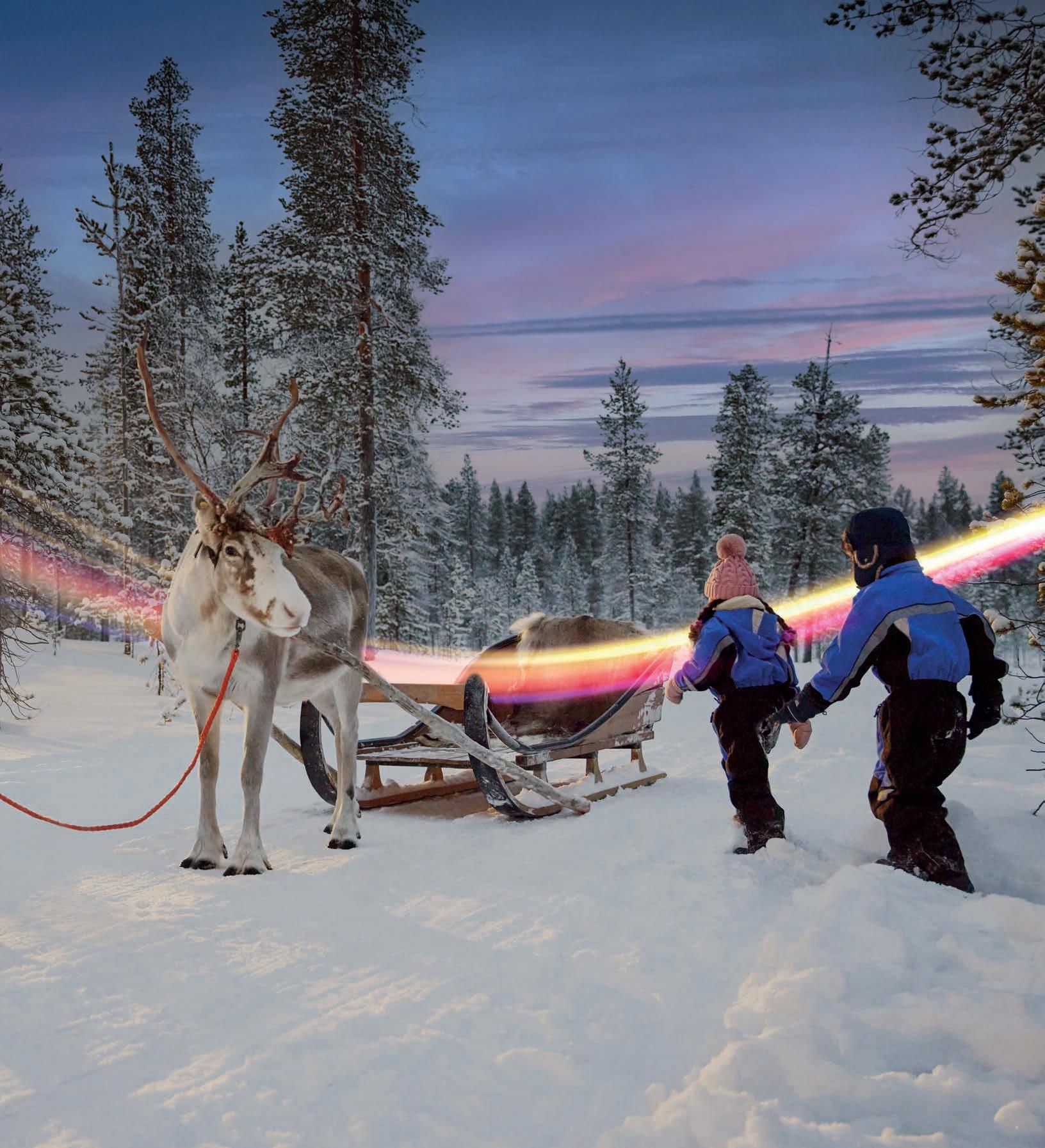 Choose from a 2 or 3-night adventure - will you go for our Santa’s Magic or Santa’s Aurora experiences? Either way there’ll be a reindeer ride, sledging with huskies, tobogganing, lots of snowy activities and so much more! Quick, jump in your sleigh. Track the magical glow trail Santa leaves behind. Where’s it going? Will we find Santa’s home?