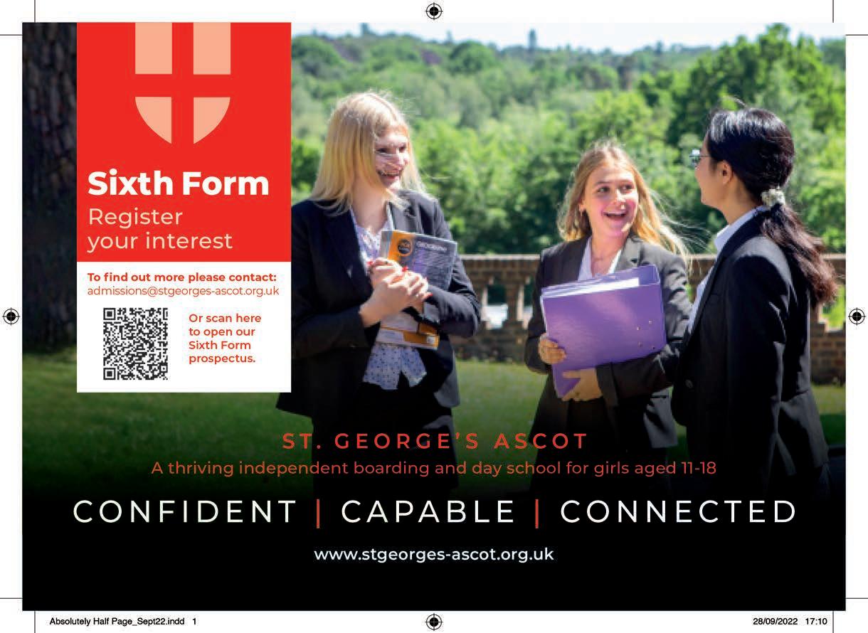 ST GEORGE’S SCHOOL WINDSOR CASTLE A future-focused education In an iconic location in the heart of Windsor Discover how our pioneering International Baccalaureate curriculum can help your child to be truly Real World Ready. Find out more at stgwindsor.org School bus service now available from Gerrards Cross and Maidenhead, including stops along the route in both Windsor and Datchet.
