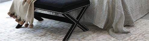 Fabric: Designer´s Guild Glenville Oyster I Carpet: Light Beige I Bed Linen: Havsbris White I Bedside table: Holme