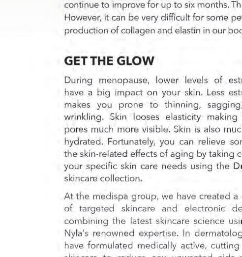WHY DR NYLA : Doctor Nyla is a skin specialist, trusted by TV personalities, well-known celebrity figures and some of Britain’s most familiar faces in the media industry. Founder and Medical Director of Doctor Nyla Medispa is a highly respected and much sought after cosmetic Dermatology GP. Dr Nyla is a winner of Best Cosmetic Clinic 2019 to 2020 and a nomination for Best Cosmetic Doctor 2021. With the largest Exilis Elite skin tightening in the UK, alongside the 2nd largest CoolSculpting clinic in Europe. Dr Nyla is considered one of the top cosmetic doctors in the country. Having practised medicine for over 20 years and having personally delivered over 200,000 treatments with truly exceptional results, she has gained the admiration of the industry. Over her 20 years in medical aesthetics, she has transcended across the years to personally understand how to manage the menopause.