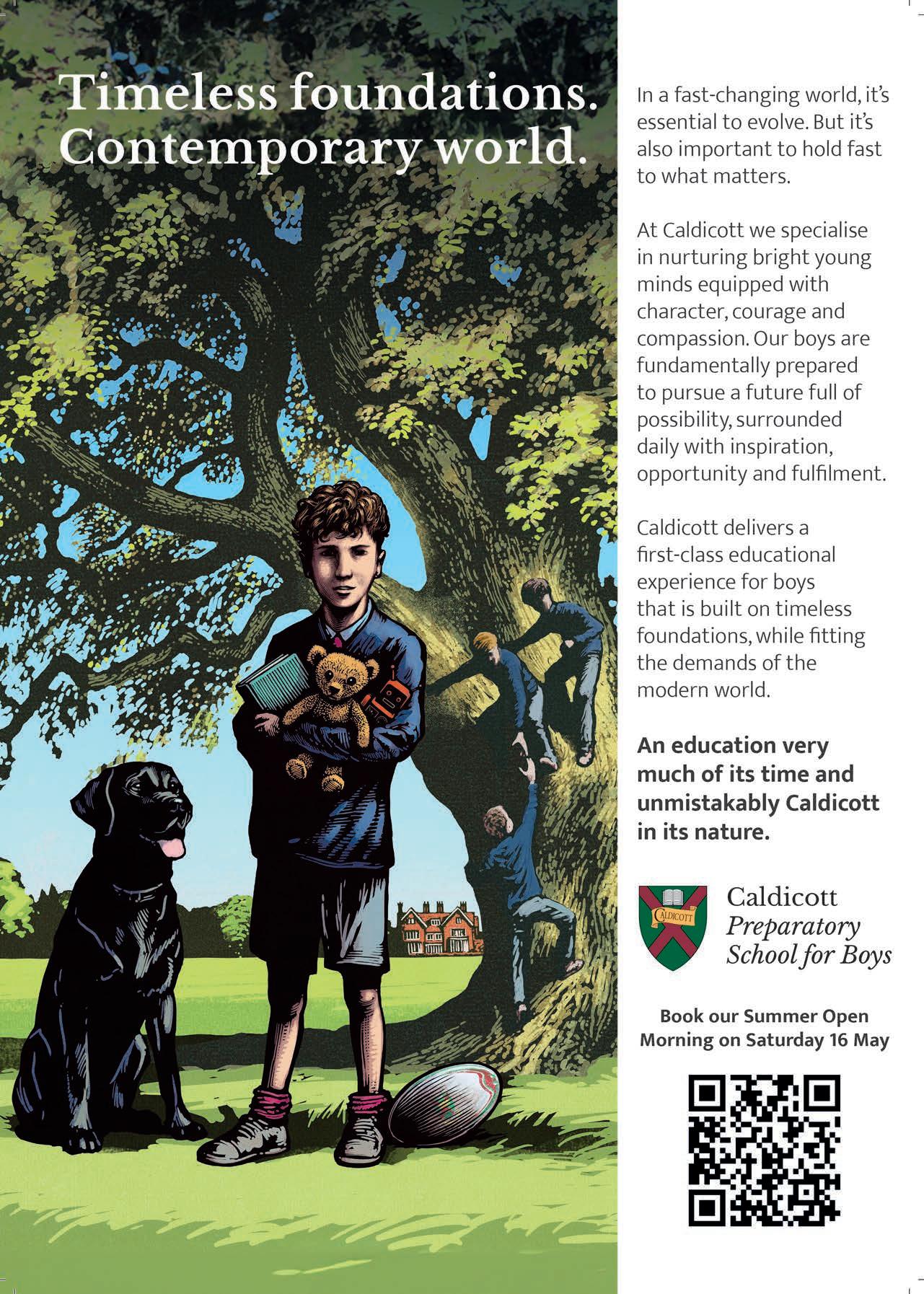 Caldicott delivers a first-class educational experience for boys aged 7-13 that is built on timeless foundations, while fitting the demands of the modern world. Located in rural South Bucks, the school is set within 40 acres of green belt countryside, yet only 30 minutes from West London. A dedicated team of Caldicott drivers takes stress out of the school run with a minibus fleet extending locally and throughout West London. Known for stellar academic results and an impressive leavers’ destinations list, Caldicott boys in the last five years have progressed to more than 30 di erent senior schools. The school has also achieved a ‘full house’ of scholarships (academia, arts and sport) for many years, despite modestly-sized year groups.