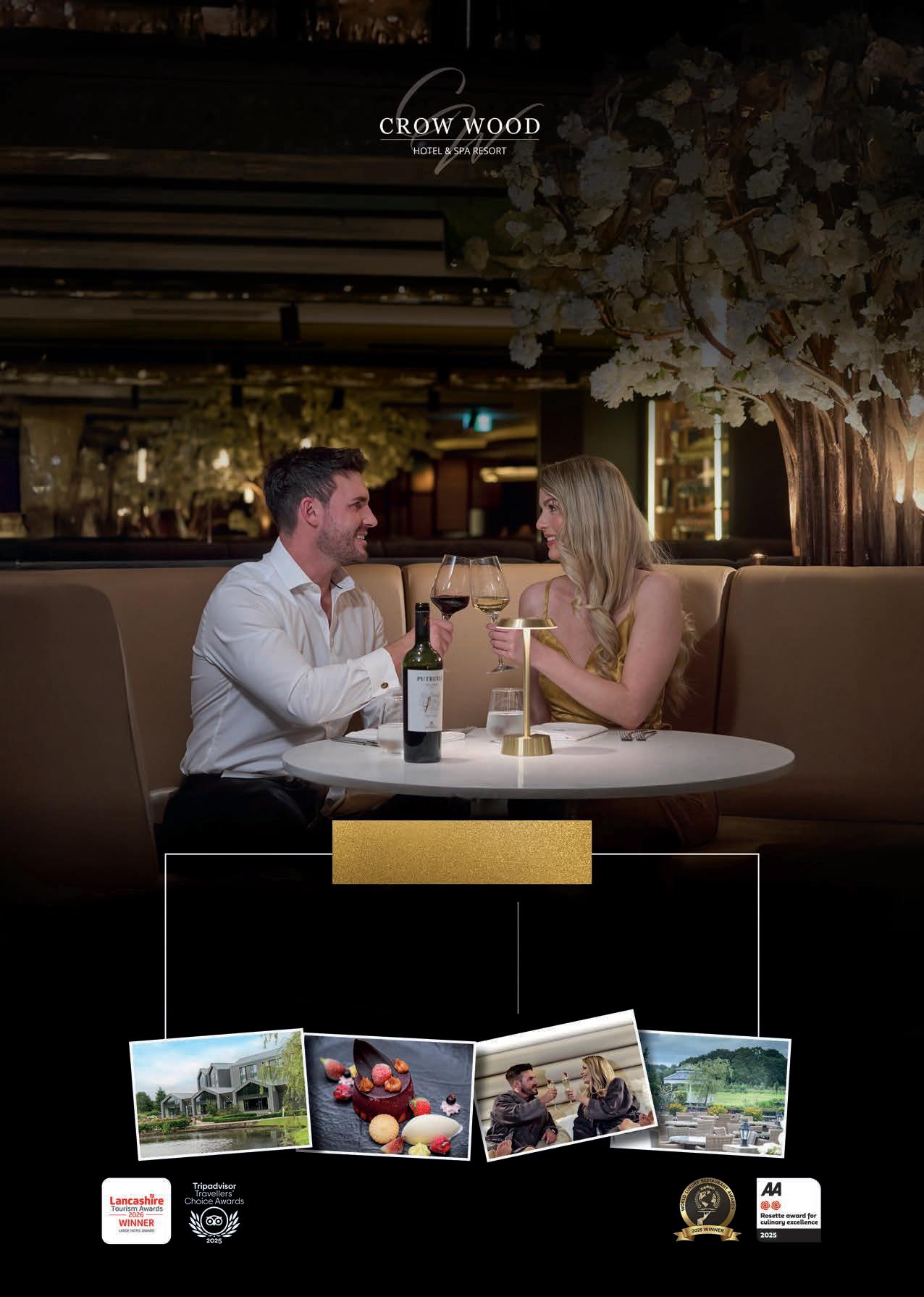 Dining is a central part of the experience at Crow Wood, with three on≠site restaurants o ering something to suit every taste. Bertram s Restaurant at Crow Wood stands out as a true destination in its own right, having won the prestigious Taste Lancashire award last year. Alongside this accolade, two of the resortís restaurants hold AA Rosettes, reflecting a commitment to quality, creativity, and exceptional service. Whether youíre in the mood for refined dining or something more relaxed, each venue delivers a memorable culinary experience using the finest ingredients.