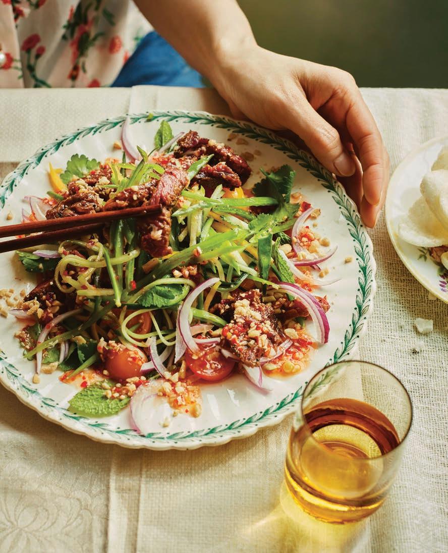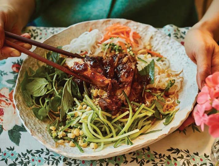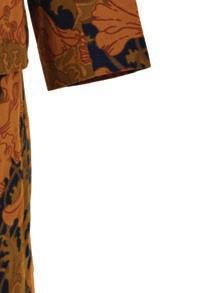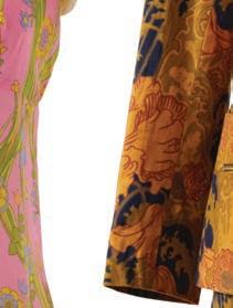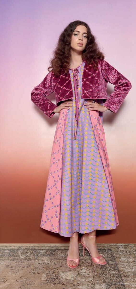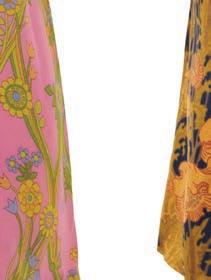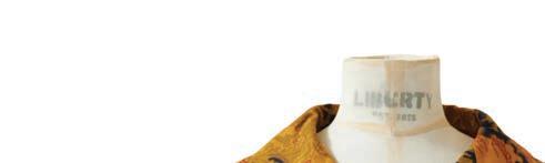Elsewhere, garments reveal the extraordinary versatility of Liberty cloth. A BIBA trouser suit captures 1970s glamour, while a 1978 wedding dress — patchworked from 17 di erent Liberty prints — speaks to the fabric’s emotional resonance. A contemporary highlight, meanwhile, points to Liberty’s global reach: a traditional Emirati kandoora embellished with beadwork, featuring a design by current Head of Design Polly Mason.
