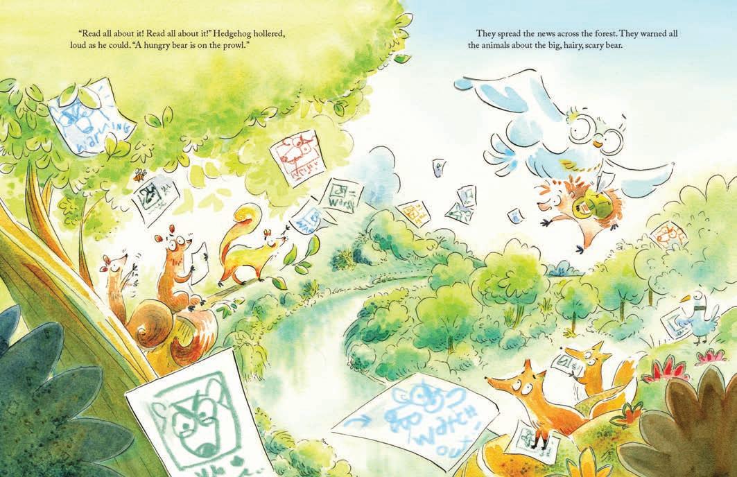 animals in the forest from the bear he makes sure he gets the news out there. “One of the reasons that I wanted somewhere in the story to talk about his Dad being a journalist, and how the news, the truth, can save the animals and the forest, is because I think journalism is more central now than it has ever been,” he says. With the ongoing march of AI, social media and all the rest, he knows news gathering’s primary purpose needs to be made clearer – separate – from the rest. “That very basic idea of journalism, which is of someone going out there to see what is happening with their own eyes, that is what journalism must be about. Our kids must be encouraged to do that.”