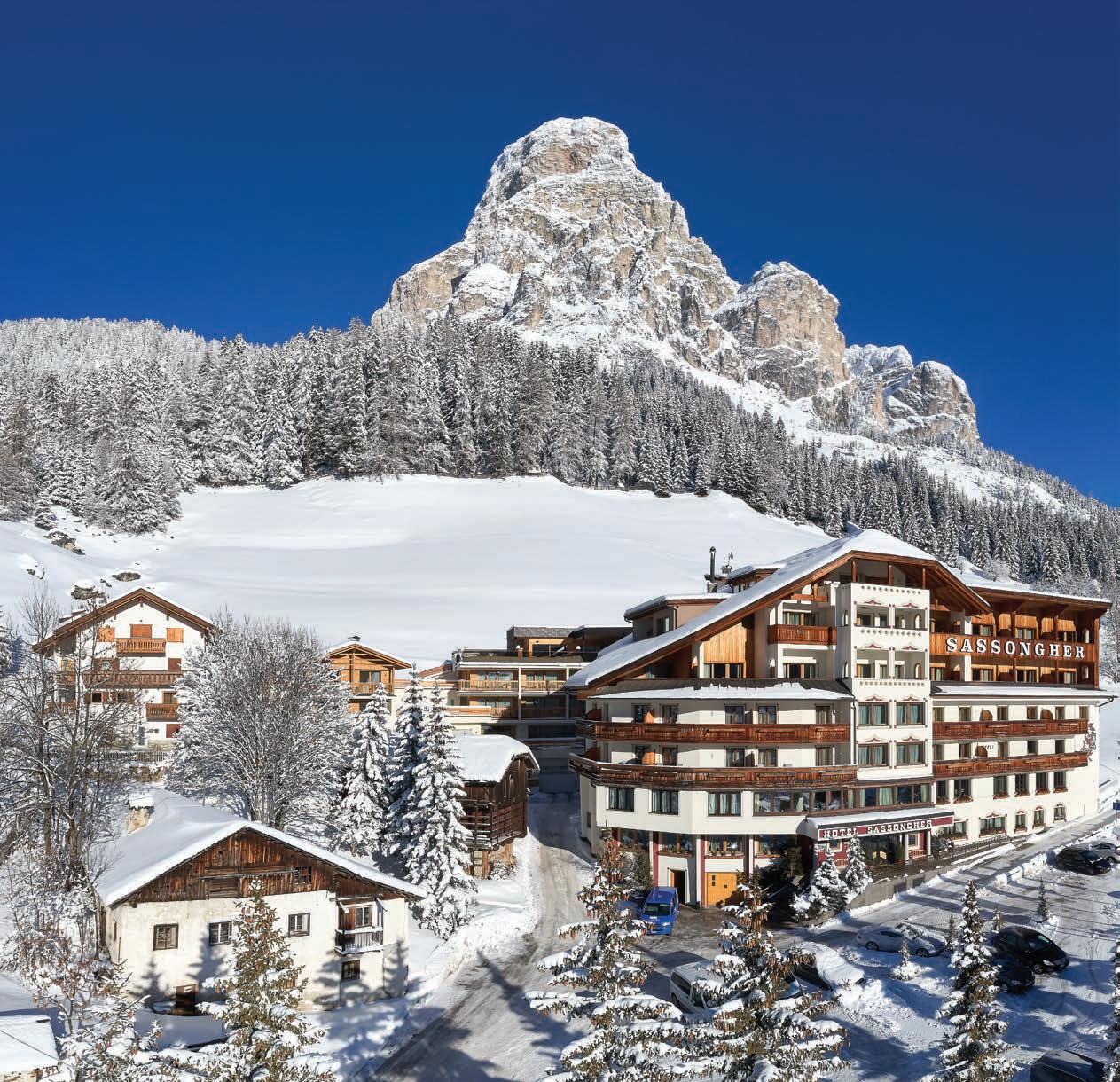 Situated within the Alta Badia ski area and part of the vast Dolomiti Superski region, Corvara o ers access to over 1,200 kilometers of interconnected slopes, ensuring a diverse and exciting skiing experience for everyone. In the village, Hotel Sassonger is an endearingly authentic mountain hotel. It’s family run, which is apparent throughout, from the diverse and often eccentric collection of art and artefacts (think hunting trophies, stag heads, a doll collection) to the friendly team (and don’t miss the collection of family photographs that show the hotel’s evolution since it opened in the 1930s). Sta speak Ladin, the mountain language that has about 30,000 native speakers in and around the South Tyrol – but of