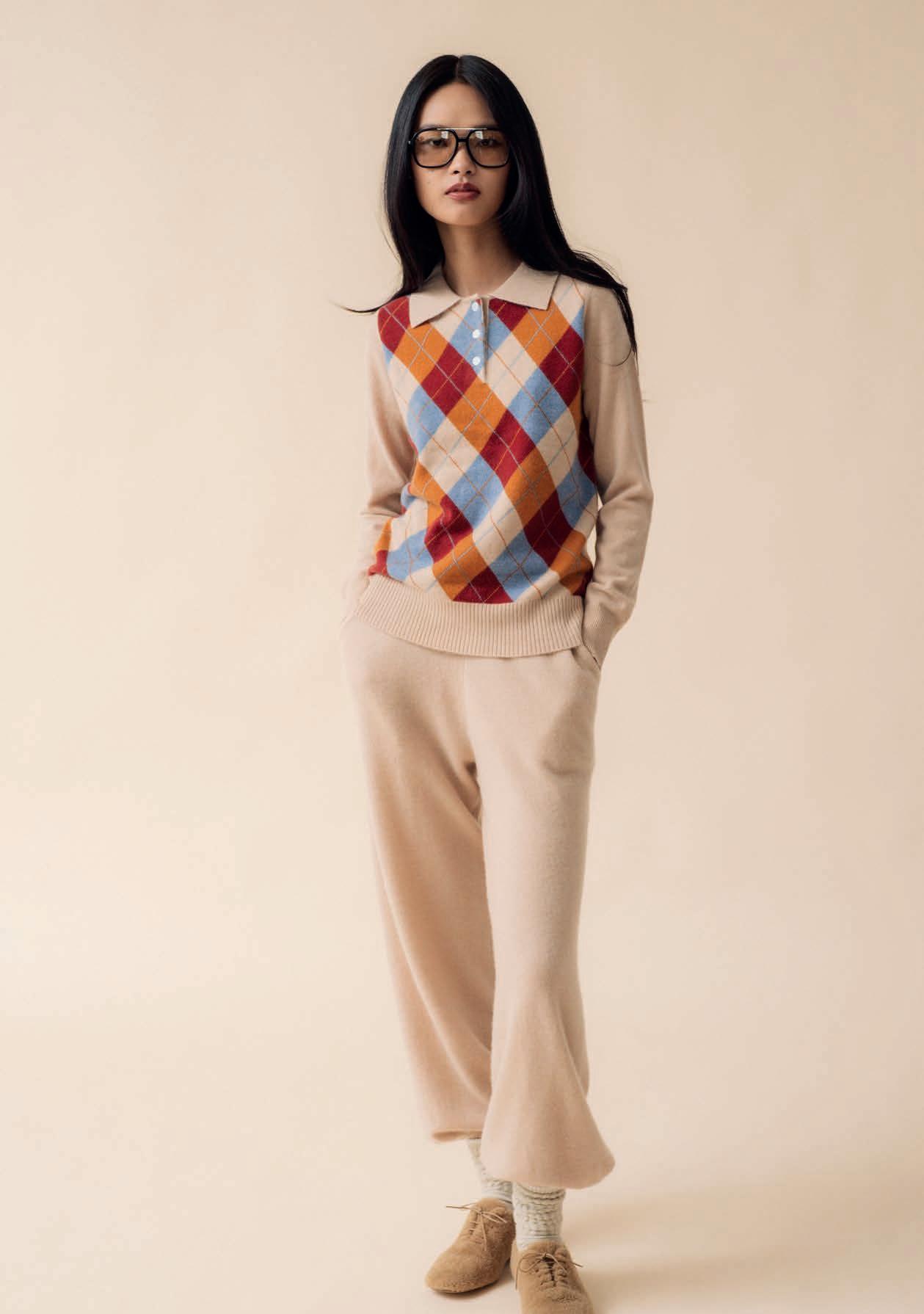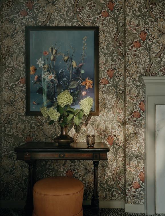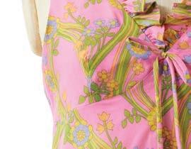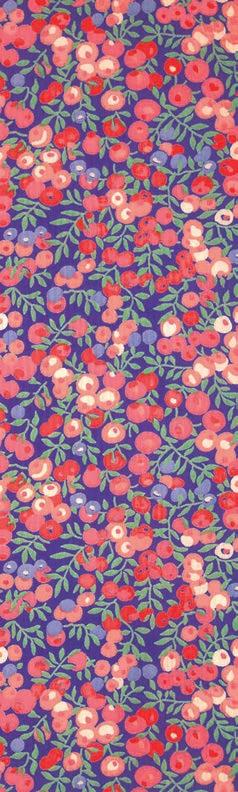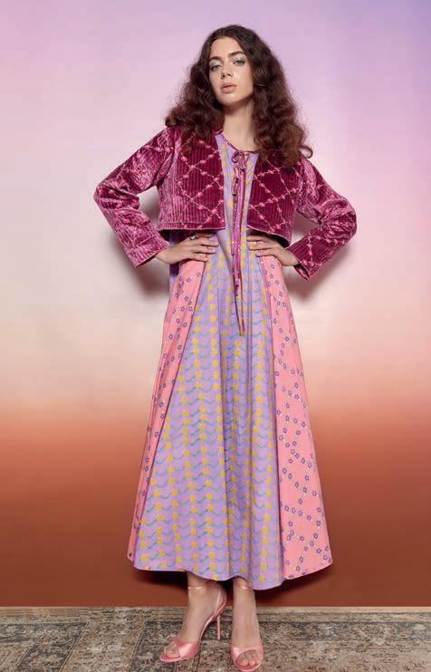 Elsewhere, garments reveal the extraordinary versatility of Liberty cloth. A BIBA trouser suit captures 1970s glamour, while a 1978 wedding dress — patchworked from 17 di erent Liberty prints — speaks to the fabric’s emotional resonance. A contemporary highlight, meanwhile, points to Liberty’s global reach: a traditional Emirati kandoora embellished with beadwork, featuring a design by current Head of Design Polly Mason.
