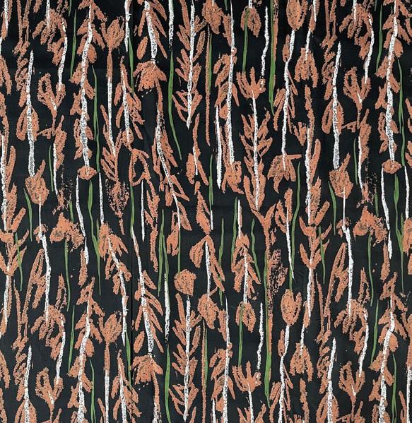 Althea McNish, renowned for her fearless use of colour, enjoy growing recognition, others remain elusive. The mysterious “Mrs Stonely”, whose designs are still printed by Liberty today, survives only through the initials “D.S” in the archive. Fashion takes centre stage in the main gallery, where garments from the 1930s to the present demonstrate how Liberty prints have continuously adapted to changing tastes. The 1960s revival — fuelled by nostalgia, eclecticism and youthful rebellion — proved pivotal. A Mary Quant “Ginger Group” floral suit and a psychedelic mini dress by Pat Albeck capture a moment when Liberty reimagined itself for a new generation. More recently, a look from Wales Bonner’s Spring/Summer 2025 collection pays homage to McNish, illustrating Liberty’s ongoing dialogue with contemporary fashion. Upstairs, the exhibition turns its attention to one of Liberty’s most enduring formats: the scarf. From a 1920s batik design by Jessie M. King to a bold 1978 drawing by Sonia Delaunay and