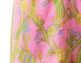 the brand. The exhibition opens by examining how Liberty embedded itself into everyday life: from its distinctive Tudorbethan flagship building to its role in both high-street fashion and bespoke couture. A 1975 scarf design by Susan Collier and Sarah Campbell cleverly echoes the architecture of the store itself, underscoring how deeply brand, building and design are intertwined.