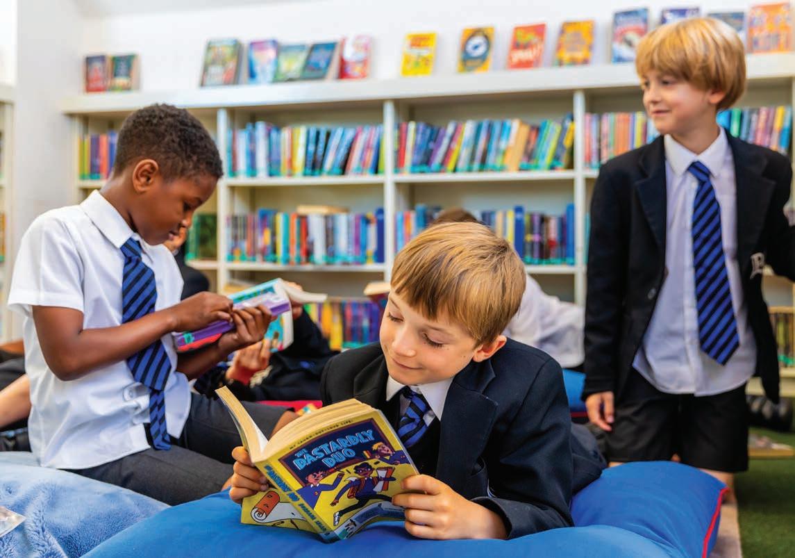 Children are given plenty of agency to inspire their skills as both readers and critics. At the start of every library lesson, there are Book Talks, in which children talk about what they are reading, if they are enjoying it and, if so, why. Peer-topeer recommendations are welcomed, and Year 6 librarians take their role of helping younger children select books at lunchtimes and breaks extremely seriously.