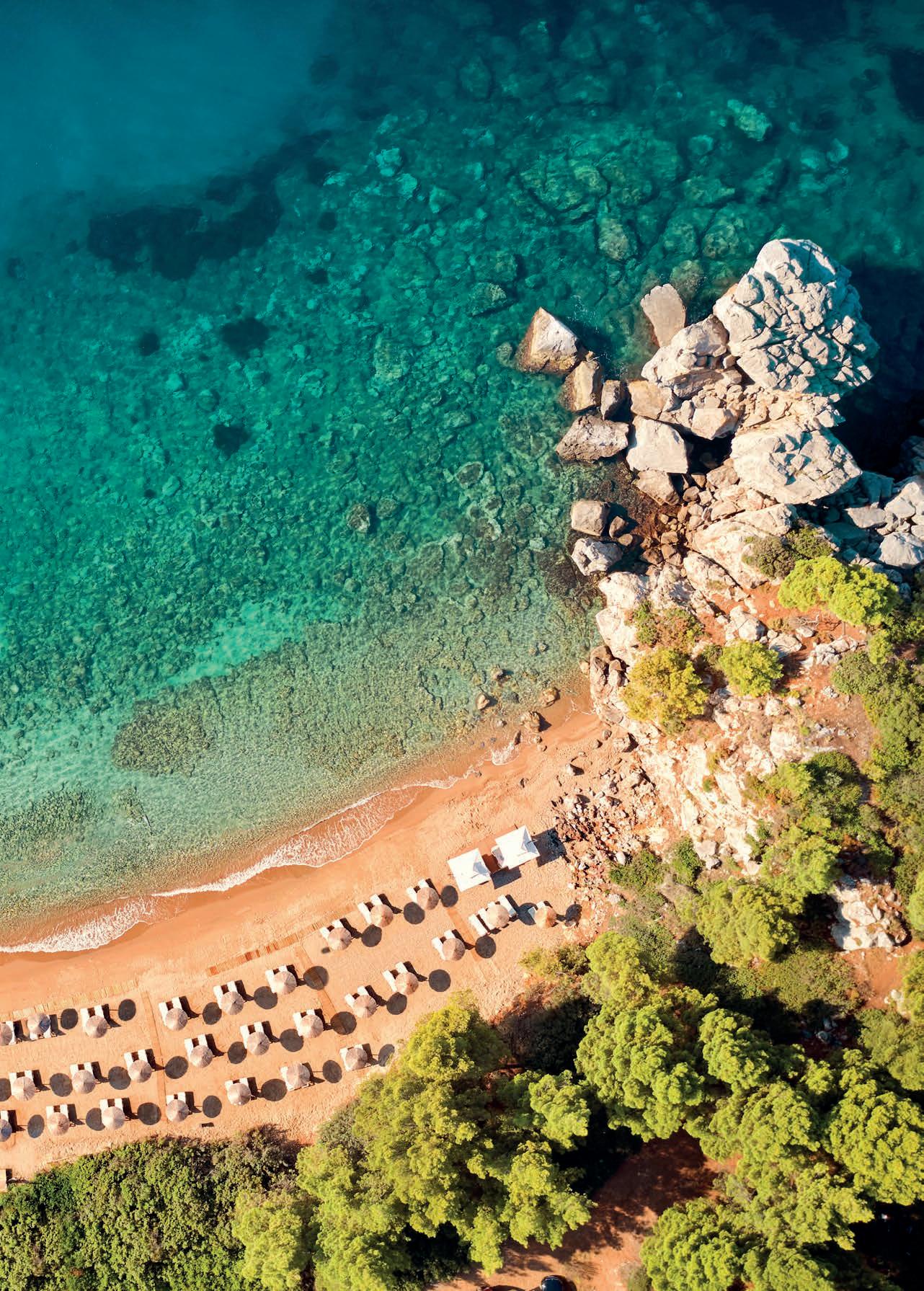 Set amid pine-clad hills overlooking the Aegean, Zeus Eleva Ajul feels as though it was designed with life’s most meaningful moments in mind. Weddings, rather apt considering Absolutely’s special this month, take centre stage here. Whether it’s an intimate barefoot ceremony by the water or a larger celebration framed by golden Mediterranean light, the resort o ers a setting that feels both e ortlessly elegant and deeply personal. There’s a sense that everything unfolds naturally – the sea shimmering in the distance, the scent of herbs in the air, and a calm, unhurried rhythm that invites you to savour each moment.