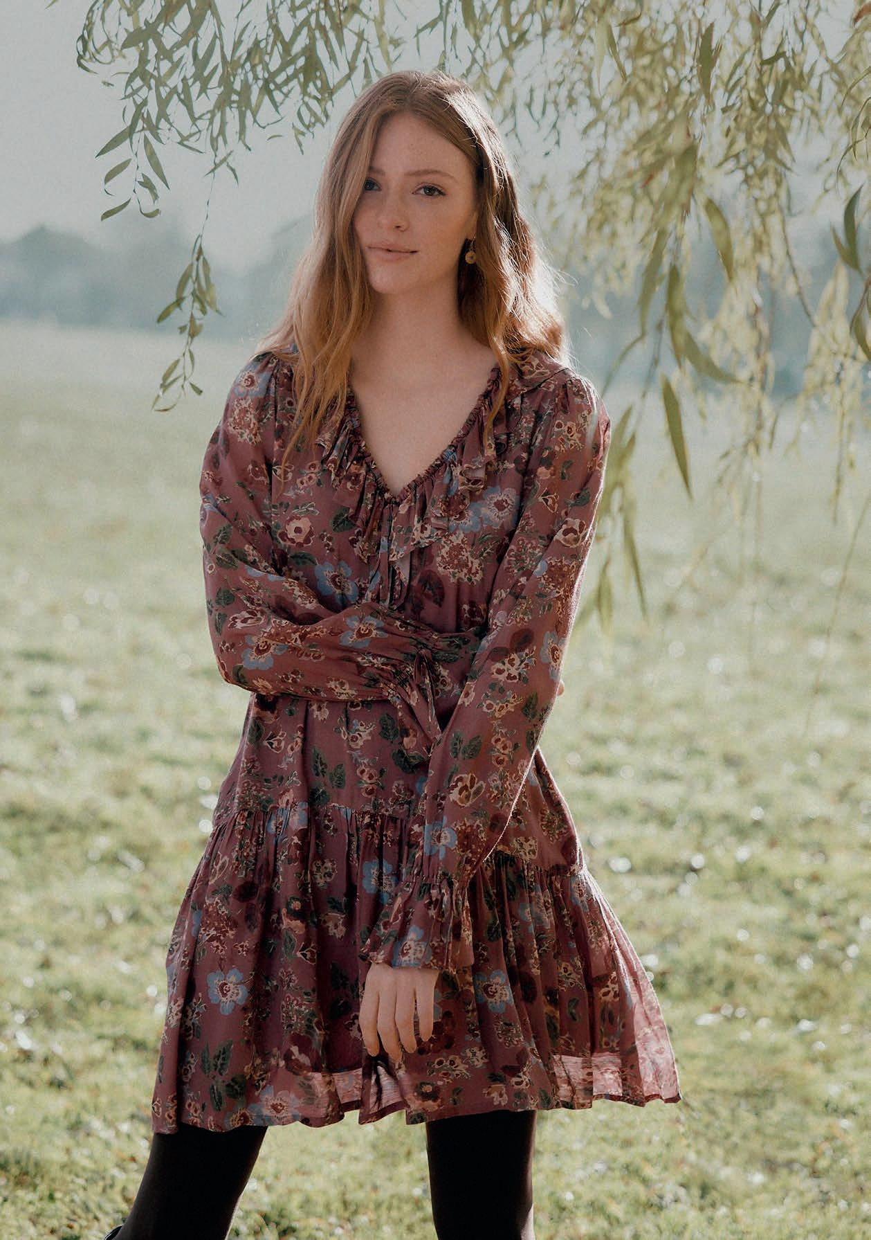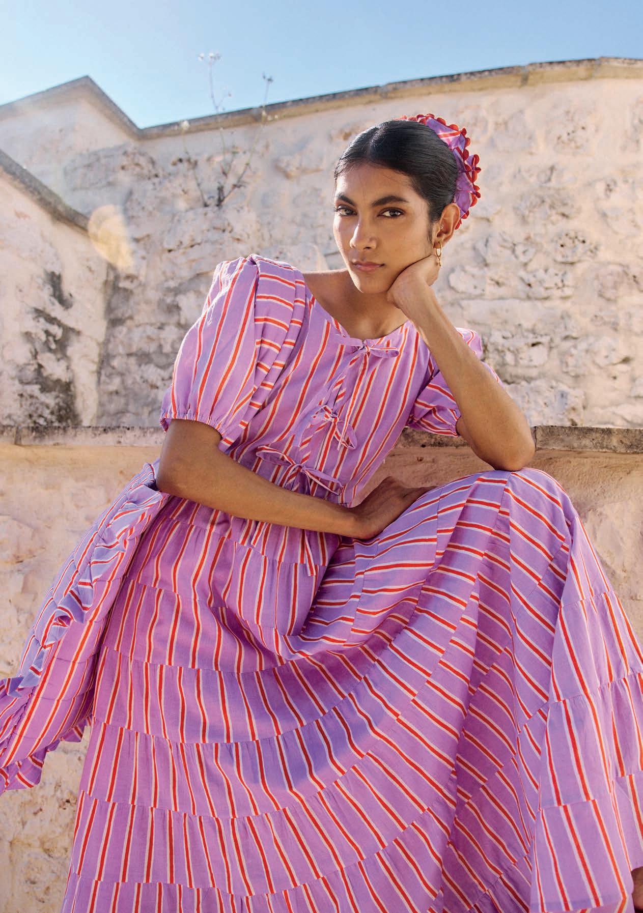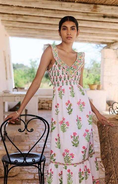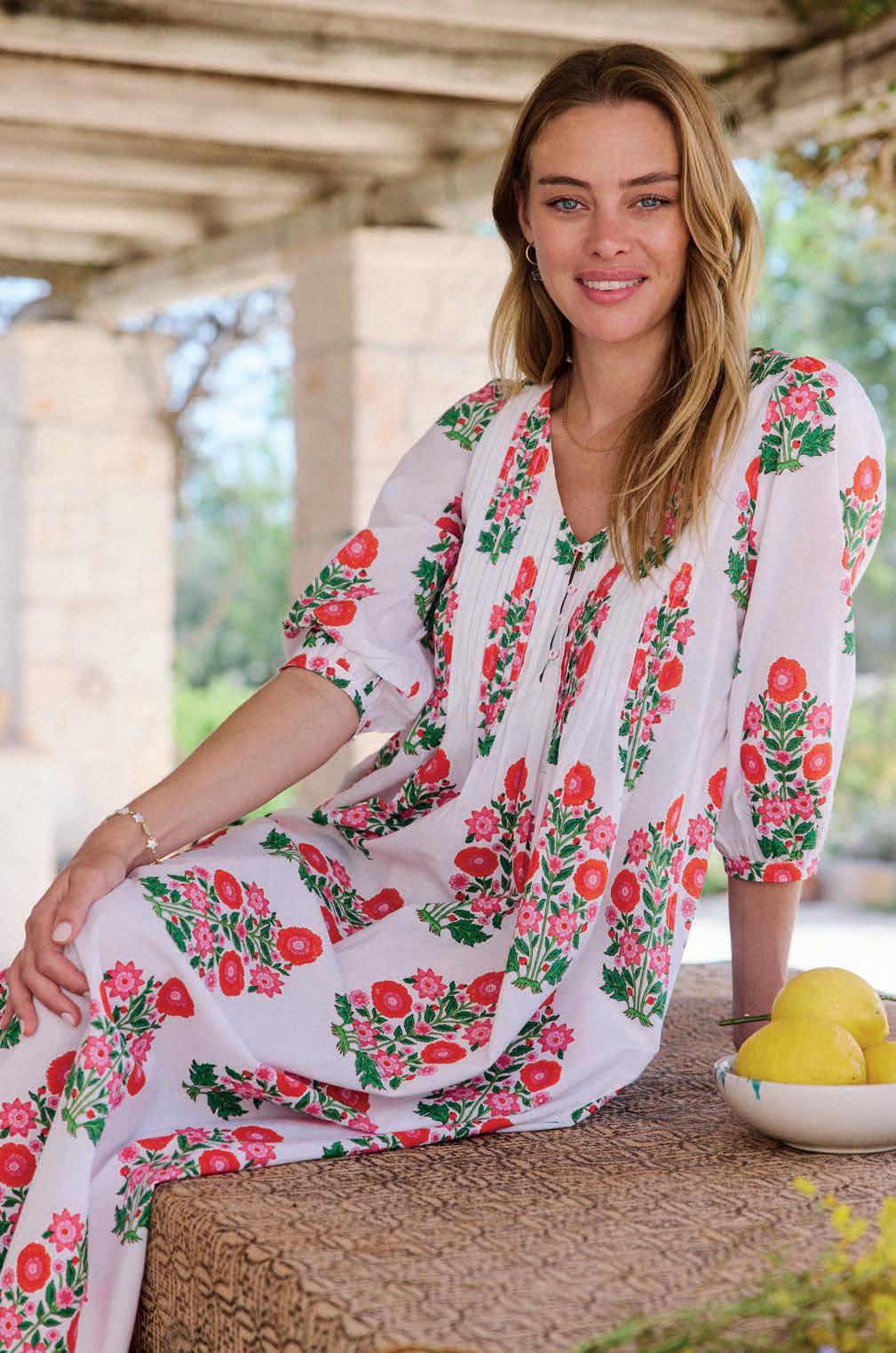 With its vintage vibe and screen -printed fl oral detail, Pink City Prints' Ava dress is an enduring favourite. Versatile and effortless, it's just as stylish with sandals for a picnic, or with heels for a party. pinkcityprints.com