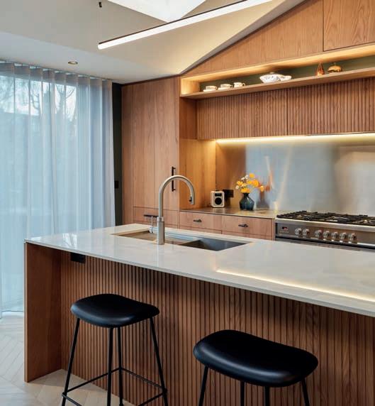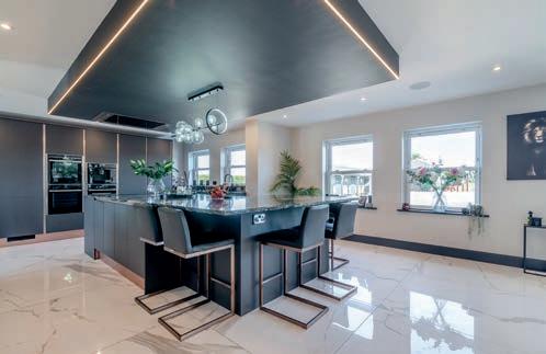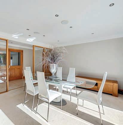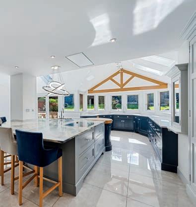 The main house o ers almost 4,000 sq. ft. of beautifully designed accommodation. The heart of the home is an impressive openplan kitchen by Jeremy Wood Interiors, with an Italian marble island, solid wood cabinetry, and integrated appliances. There are elegant reception rooms, a utility, and five well-appointed bedrooms upstairs, including a luxurious principal suite with an en-suite shower room and walk-in wardrobe.