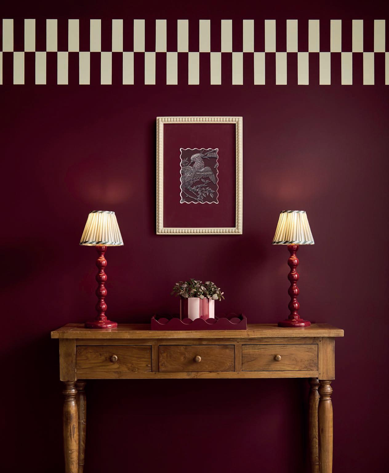 The Jam red dome fl oor lamp is a striking addition to modern interiors. Featuring a frosted glass dome atop a sleek, jam red base, this lamp delivers both bold style and functional elegance, £390. houseof.com
