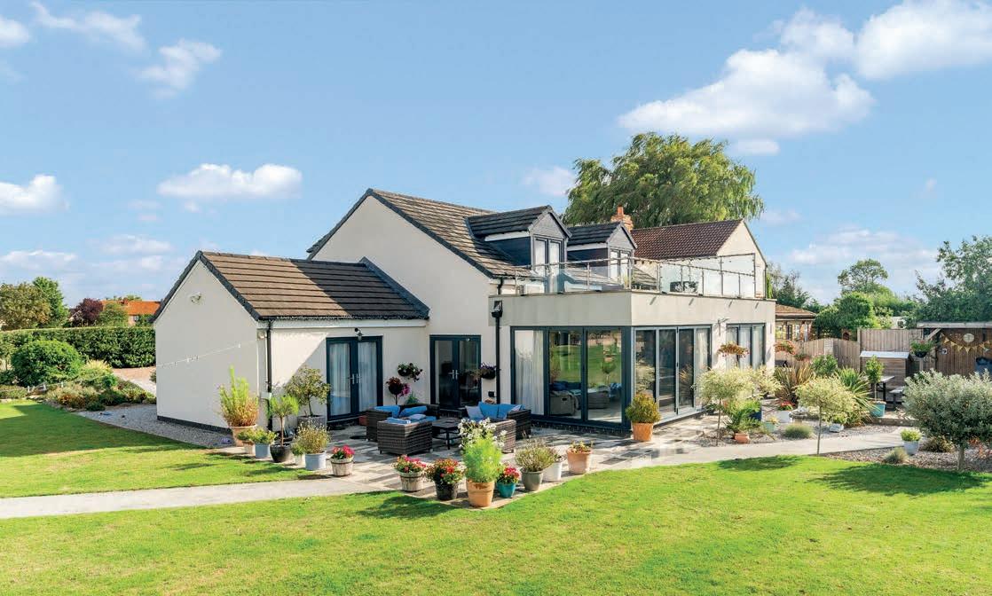 Tucked away in a peaceful setting within the popular village of Ulleskelf, this versatile detached home o ers up to ve bedrooms and a perfect mix of modern living and countryside charm. The heart of the home is a stunning open-plan kitchen and dining area with an island, integrated appliances, and bifolding doors opening onto the south-facing garden. Downstairs also includes a study, lounge or guest bedroom with en suite, and utility room.