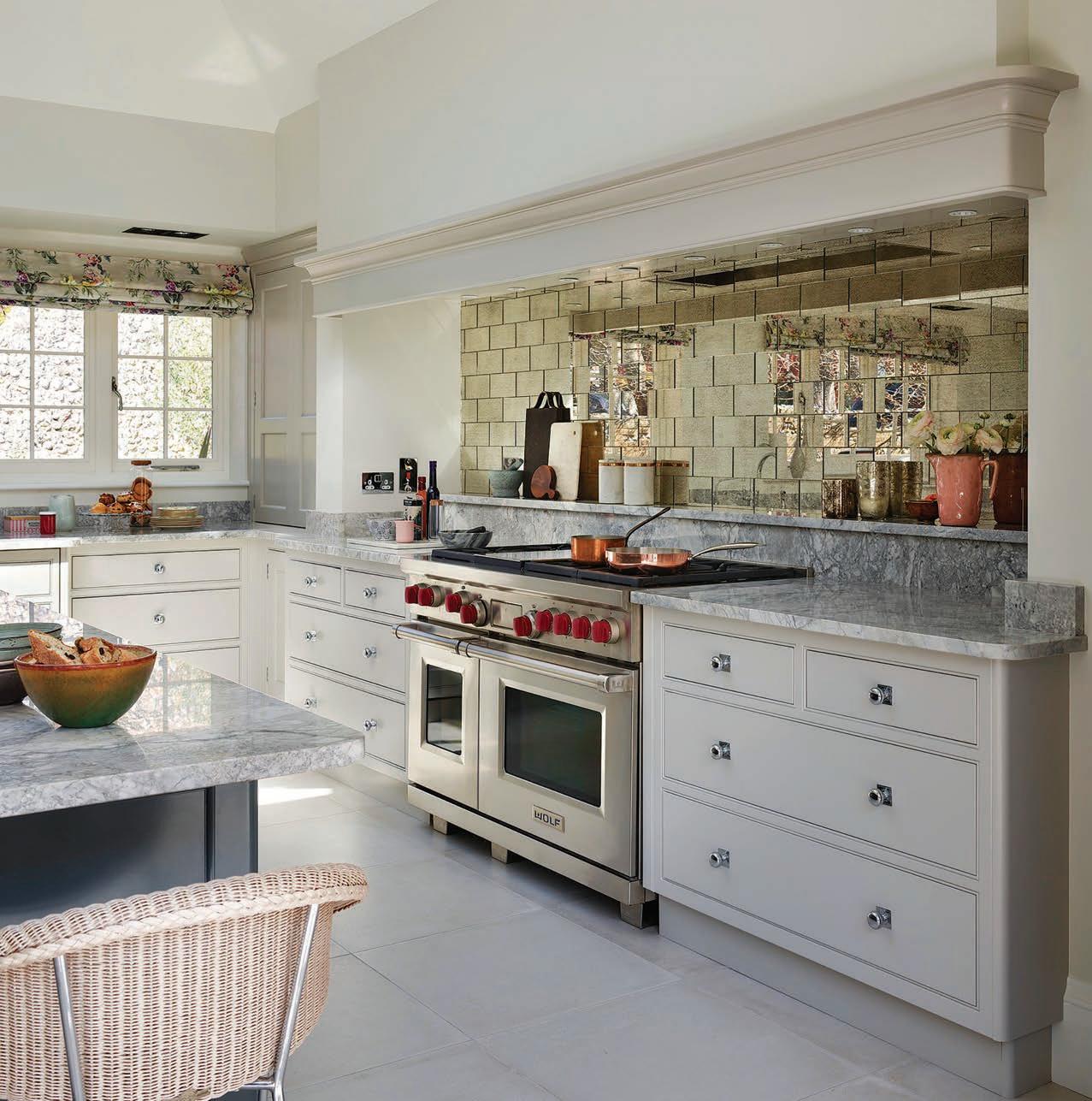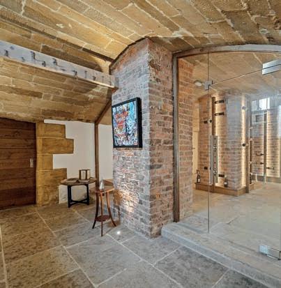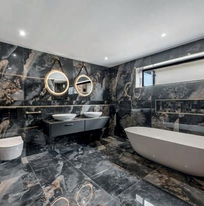 A striking first impression begins in the grand reception hall with porcelain tiled flooring and a dramatic cathedral-style ceiling, complemented by a bespoke staircase rising to a galleried landing. The home o ers a superb mix of formal and lifestyle spaces including a formal lounge, dining room, study/ home o ce, and a dedicated cinema room, plus a stylish guest WC. At the heart of the property is a breathtaking open-plan kitchen and living area (customdesigned by Inspired Designs), featuring high-spec German cabinetry and Antique Calacatta worktops, alongside premium appliances including Bora, Studio Line ovens, and Liebherr refrigeration and wine cooling. Full-width bifold doors bring in abundant natural light and connect seamlessly to the rear terrace.