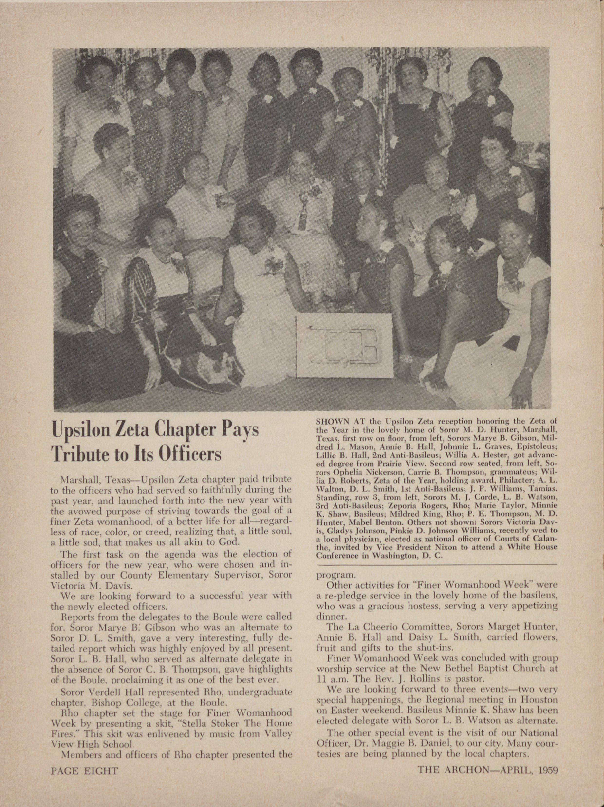 EPSILON ZETA-Ola Ail.m#. Morri, Bro„ n Col- UPS[I.ON ZETA-ltinnir Lee Shaw. 12{H} li.ir,iry 11.1'Ht I.AMIS])A ZETA -Di,vic 1.. Sinith. 17(11 lege, Atlanta. Ca. St., Marihill, 1,·Ia, Pic·krn, Air., Muda,Ker, Okla.