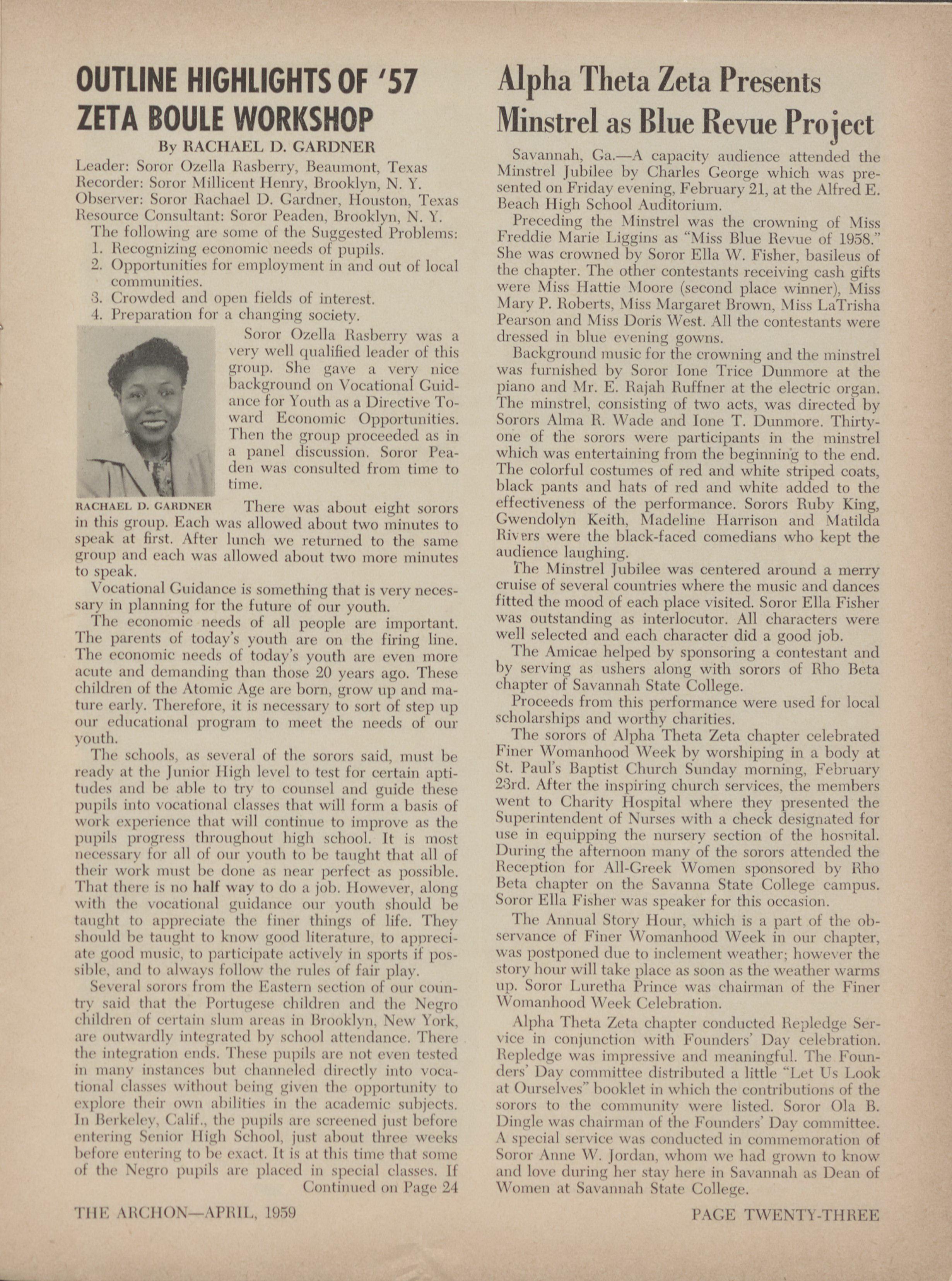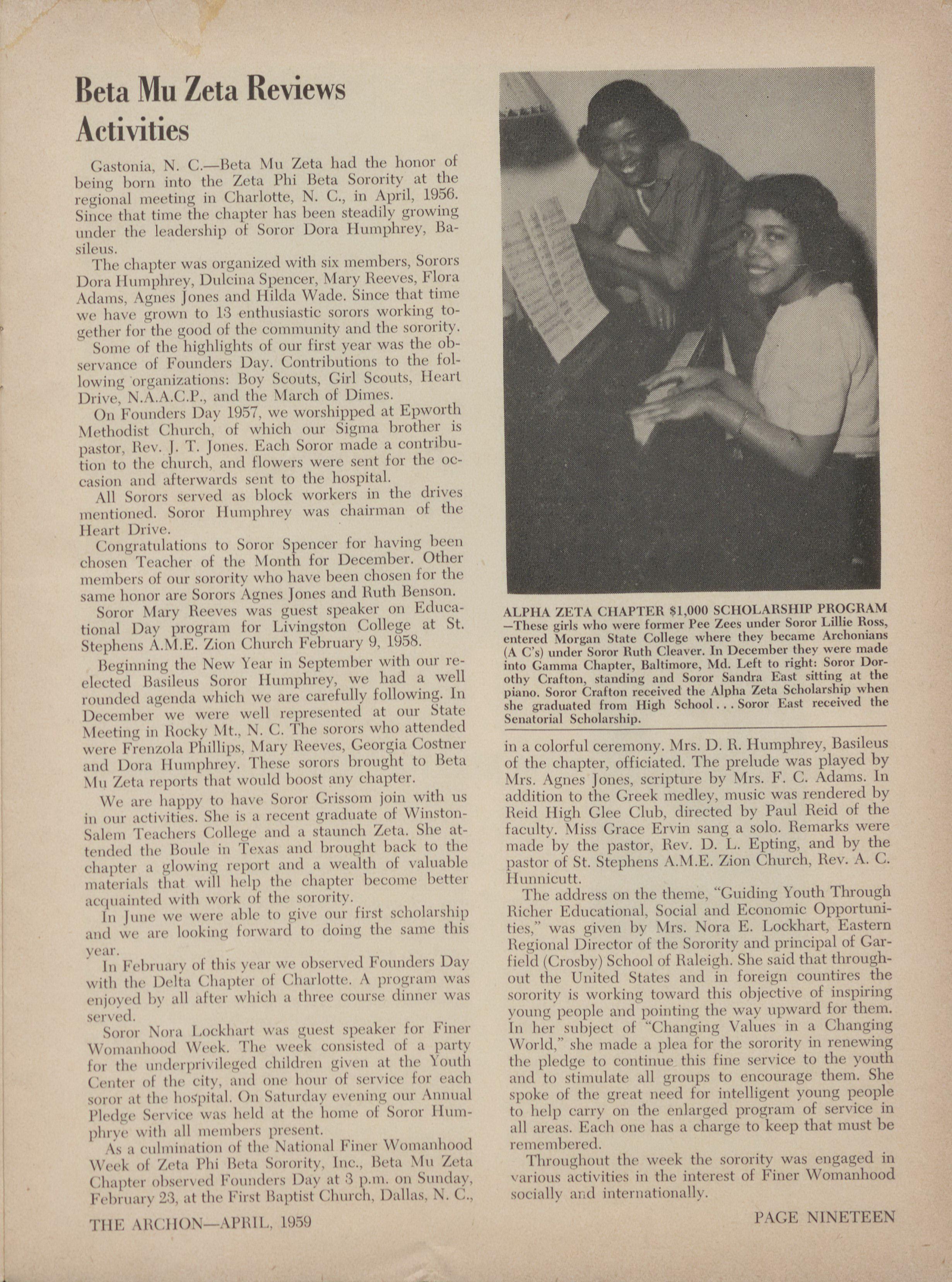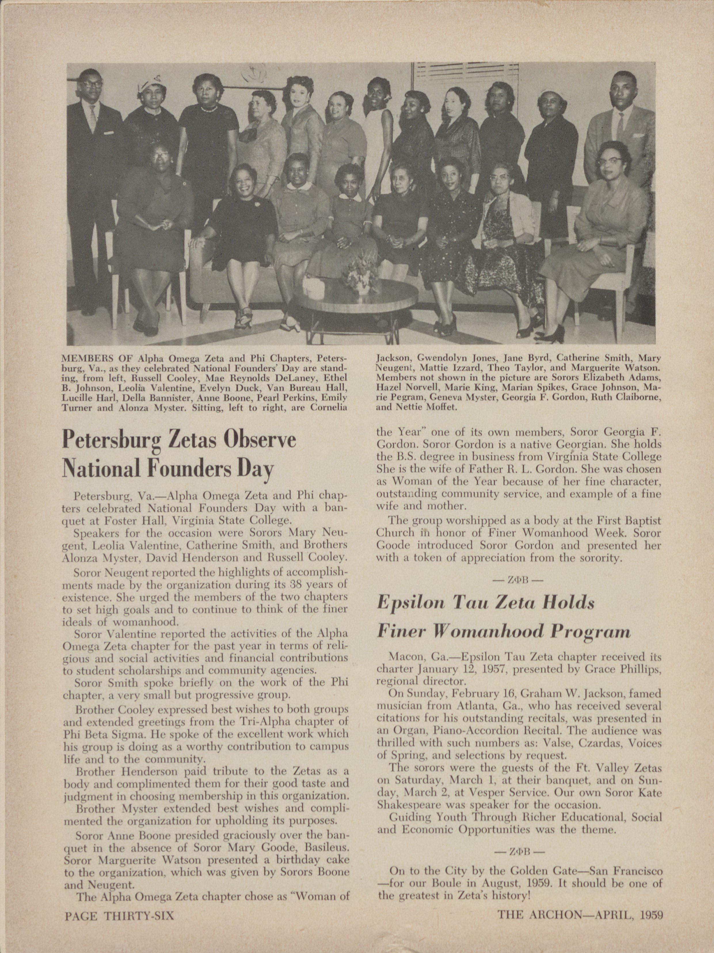DELTA 11110 ZETA-Portsmouth, Va. Arilono. leur, GAMNIA EPS]LON ZETA-Emerline HawkiliN, Itt. 3. 80.1 308, Concord. N. C. 11.1'111 1{11() 71('1.1-11:iggie lonte. 2212 1).ry St. GAMMA ZETA ZETA 1168. ht:,ike. Fla.