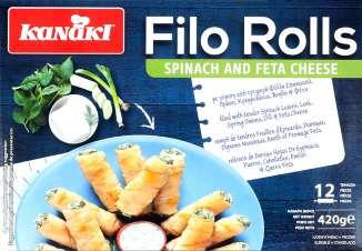 Šaldyti filo tešlos suktinukai su feta ir špinatais KANAKI**
