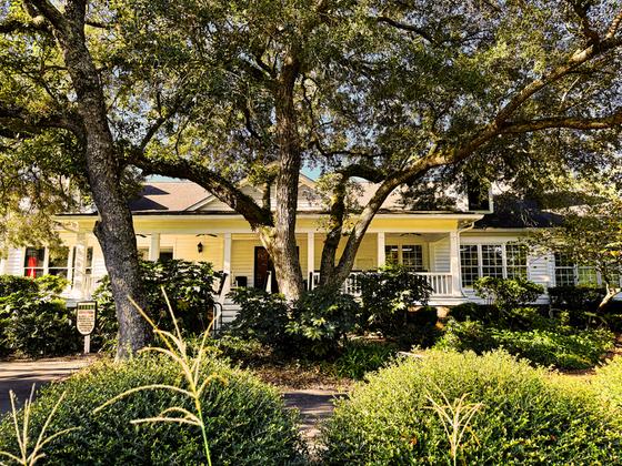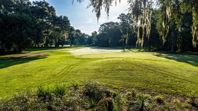 The layout follows the natural contours of the property, stretching alongside long-abandoned rice fields that now serve as a defining visual and strategic element. Wide, rolling fairways provide room from the tee, while large, undulating greens demand precision on approach shots and a confident putting touch. Mature stands of crepe myrtle, camellias, and azaleas frame the holes, complemented by carefully landscaped wildflowers and flowering shrubs that enhance the course’s distinctive Lowcountry character.