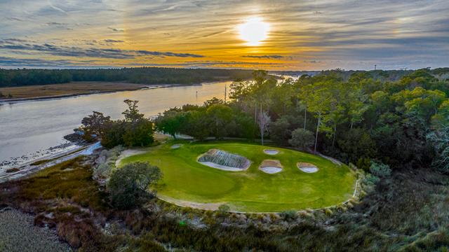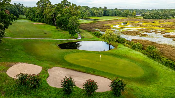 The front nine winds through tree-lined fairways and natural wetlands, where accuracy off the tee is essential to finding ideal approach angles. As players transition to the back nine, the landscape opens dramatically, revealing expansive marsh vistas and holes that play directly along the river. Tidal movement subtly alters the surrounding scenery throughout the day, adding to the course’s character and making each round feel distinct.