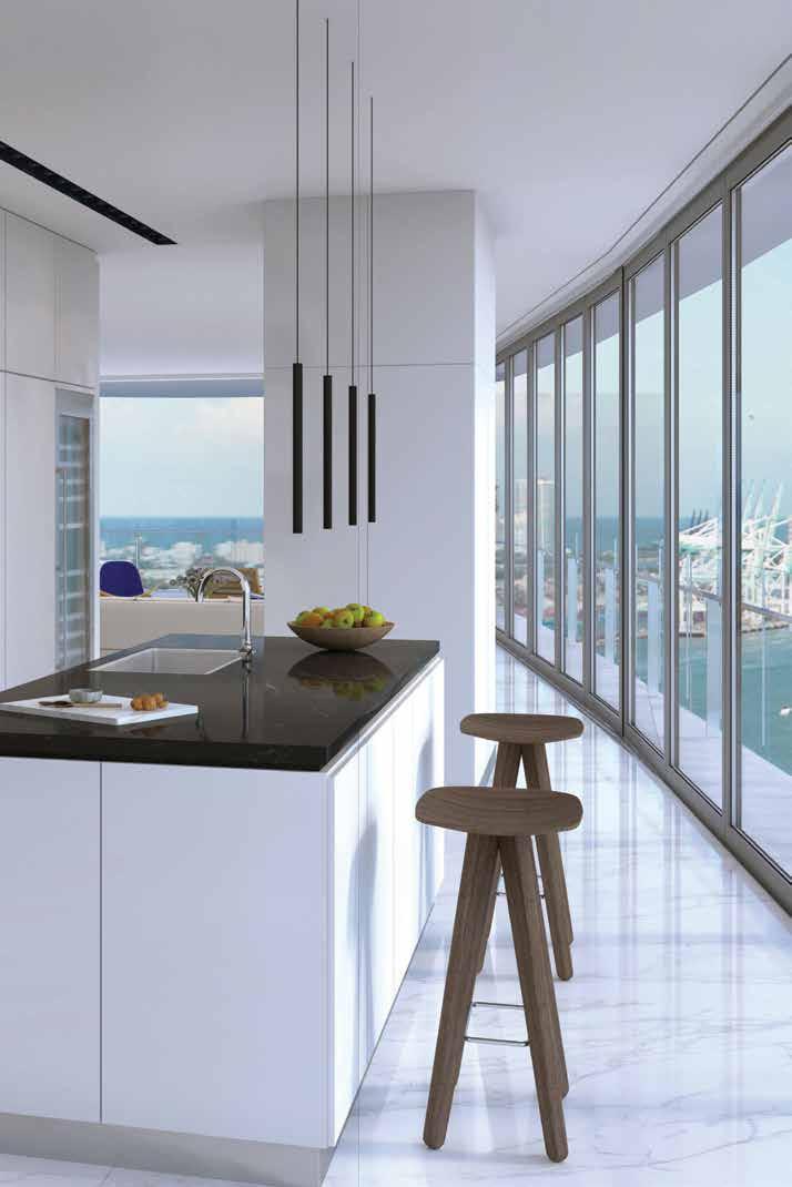 Spacious and naturally luminous interiors have been meticulously designed, inspired by a love of true beauty. Each habitat creates the perfect ambience for the most comfortable and elegant living and for enjoying the panoramic views of the Biscayne Bay, Miami River and the city’s impressive skyline.