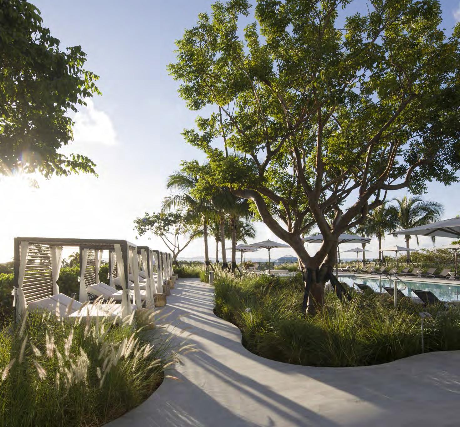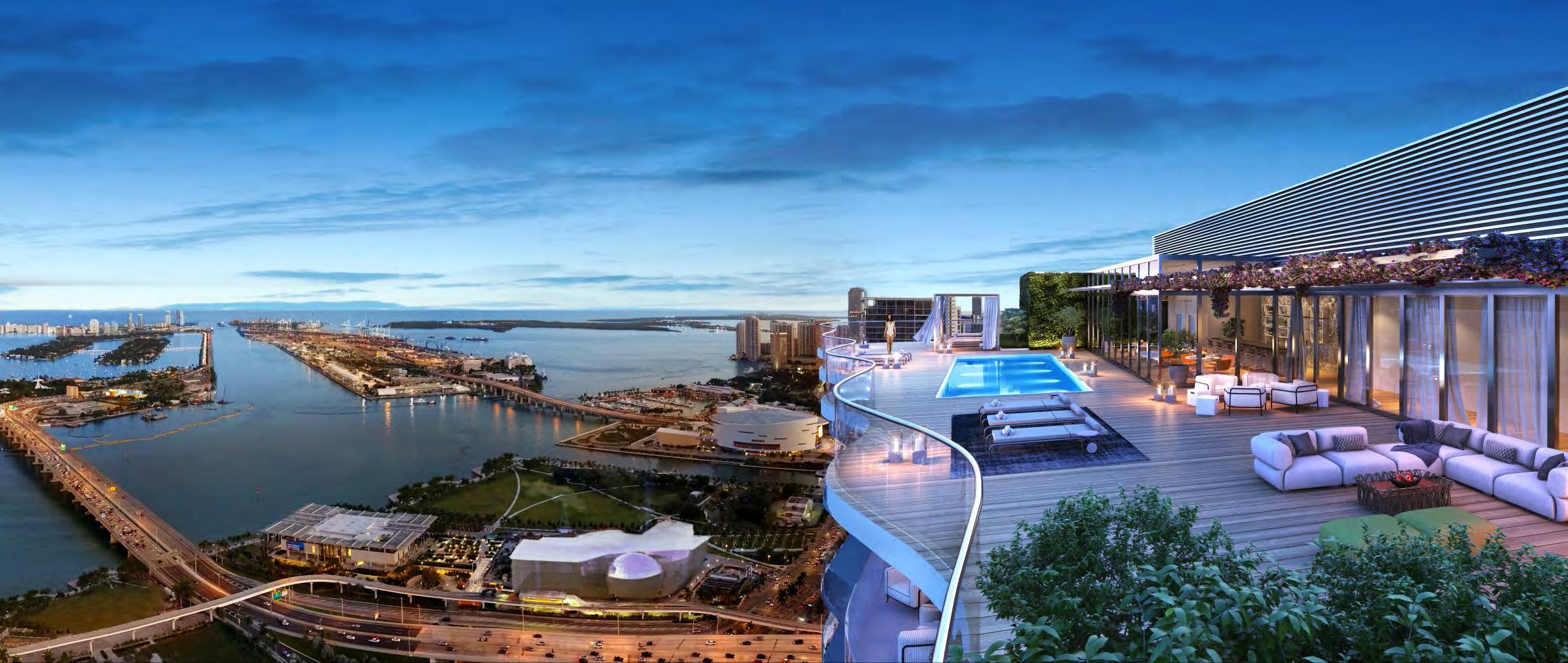 • A stunning 12th floor pool deck featuring Italian-inspired gardens designed by worldrenowned landscape architect Enzo Enea, luxury spa, and 78-foot lap pool with incredible views of Biscayne Bay