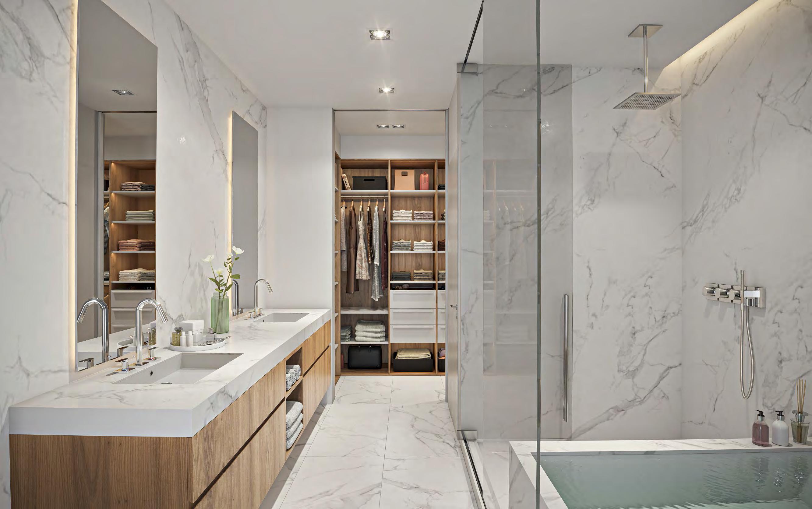 Master baths featuring imported porcelain and premium Italian cabinetry with designer details.