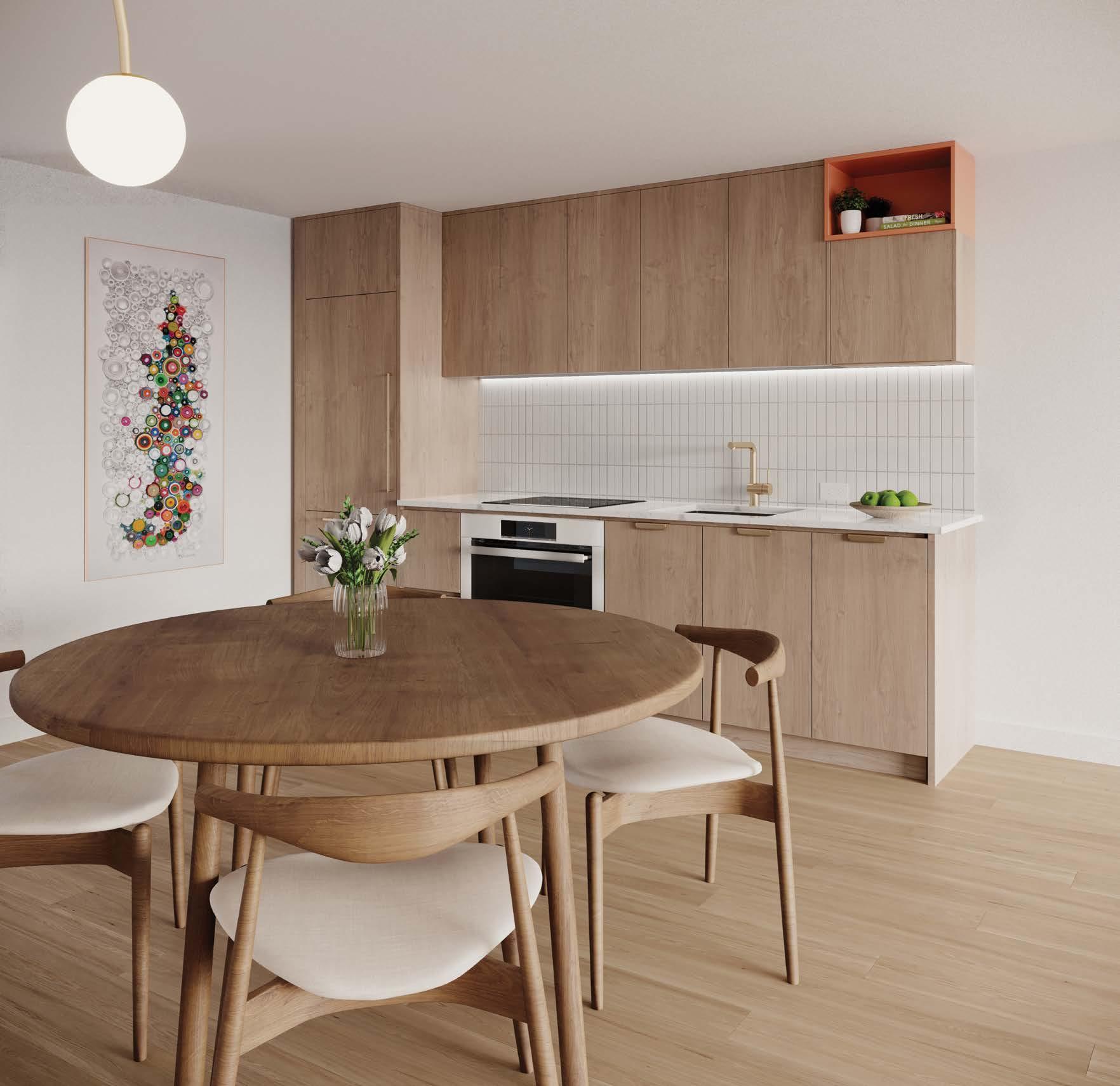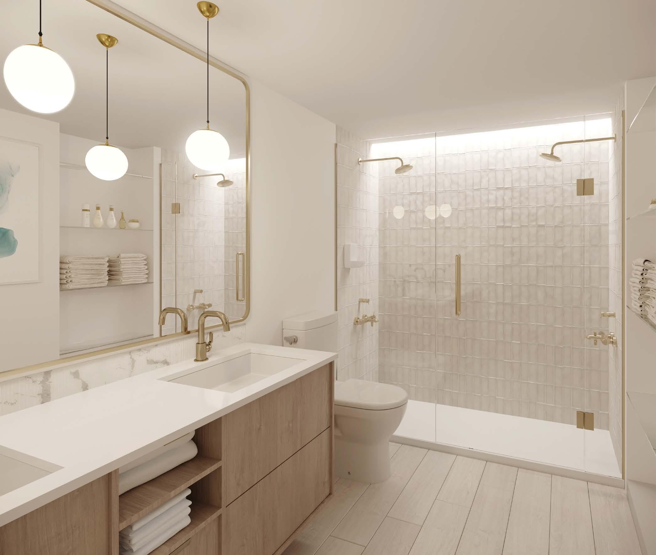 Residences will express the style and ethos that only The Standard can deliver, with meticulously curated interiors that provide the perfect balance between style and functionality. Finishes include light wood ceramic flooring, and modern kitchens with custom Italian cabinetry and Bosch appliances, while bathrooms showcase stone vanities and double-suite rain showers.
