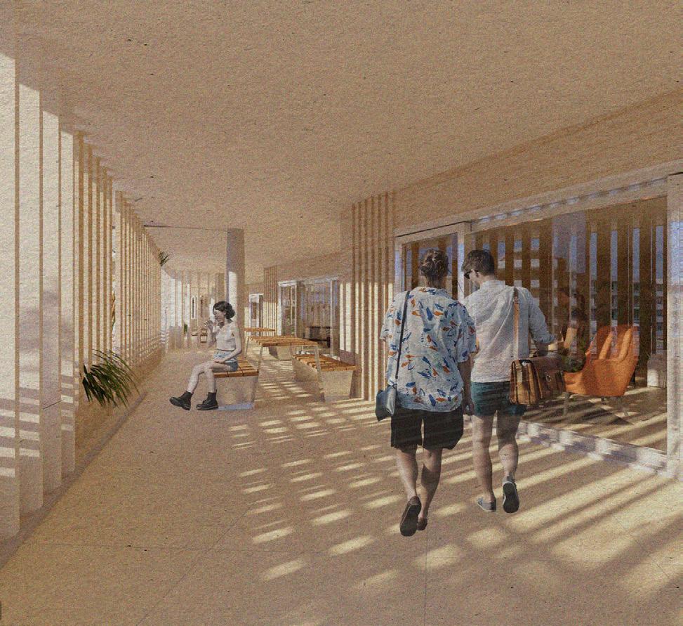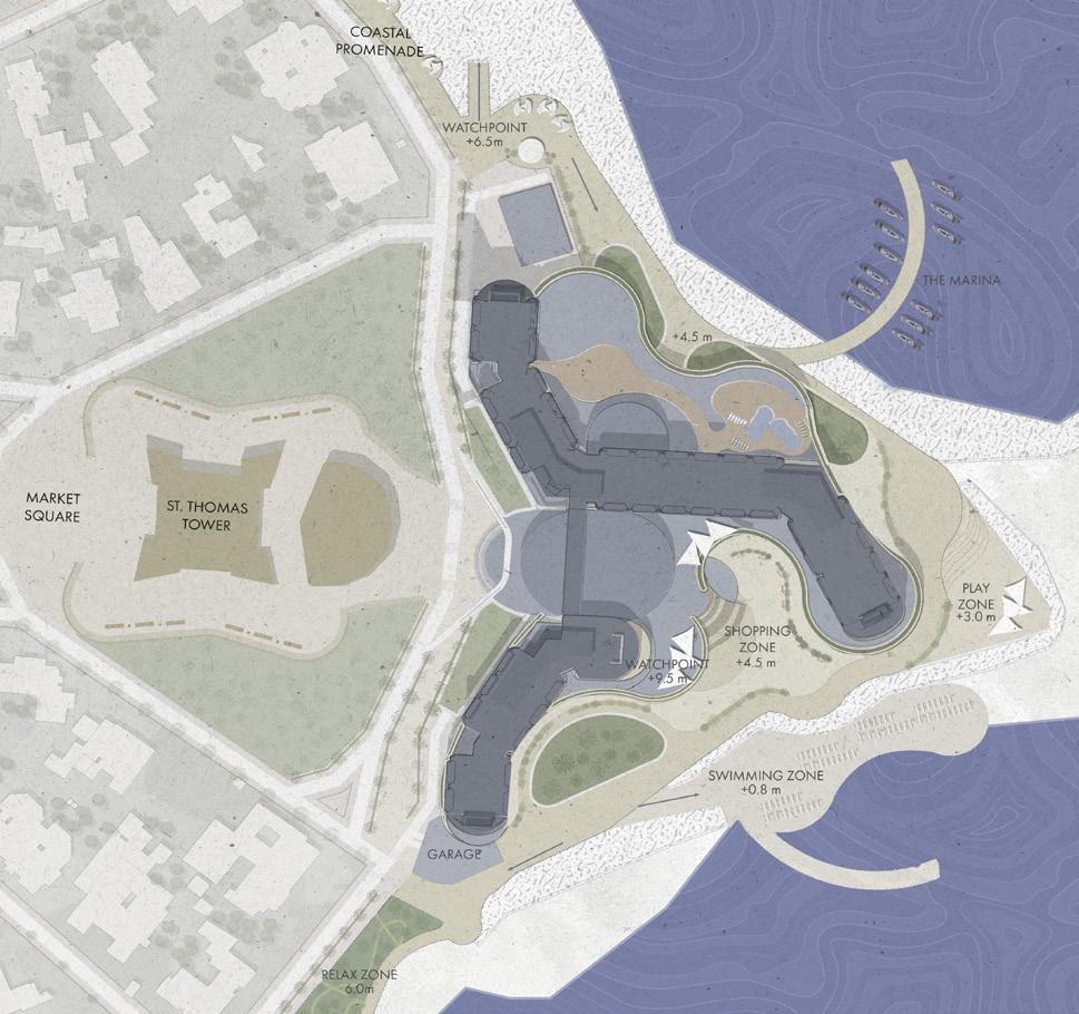 The project is based on a coastal town in Malta, by transforming an abondoned building area into a vibrant social hub that serves both tourists and the local community. Key aspects included transforming existing structures into tourism hubs, implementing optimal natural ventilation layouts and configurations, and fostering social interactions between commercial and non-commercial stakeholders. Concepts included integration of tourism products into existing context, adapting energy efficient and financially feasable energy concepts like passive design and combat against high seasonality by introducing 3 lengths of stays as part of the tourism concept.