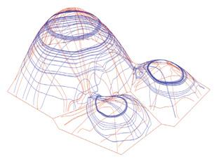 • Forms and elevations that resemble rocky elements emerging from the ground.