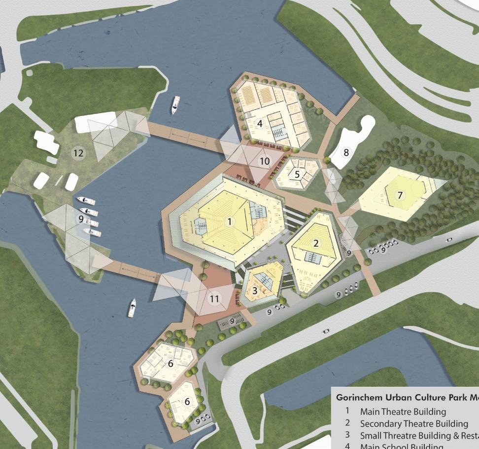 Graduation project involving a culture park complex which involves performance halls of various sizes, schools and small studios. The project pays attention to public sequence at a masterplan level and carries it to the detail level of the performance hall.