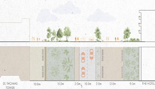 • Integrates greenery to create a clear division between the residential zone, roads and pavement zone.