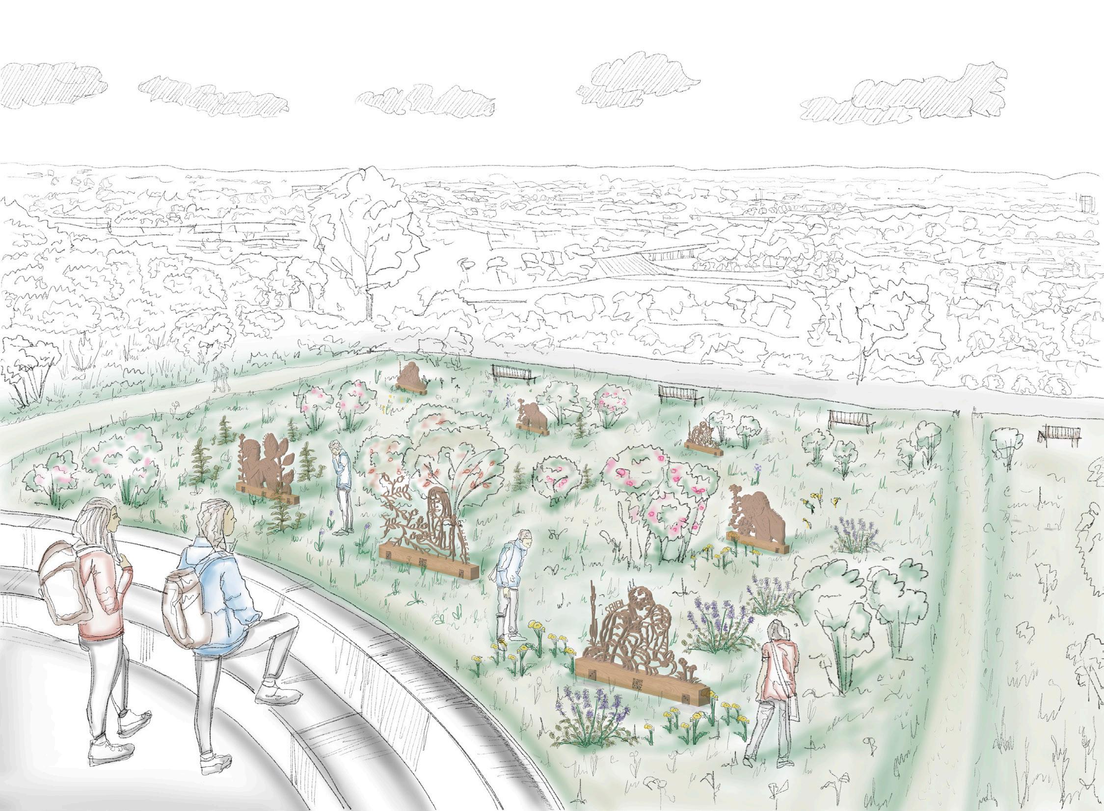 Ein weiterer Vorteil dieses Designs ist, dass die Objekte demontiert und nach dem Ende des Naturlehrpfads im Herbst durch neue Motive ersetzt werden können. Die Konstruktion der U-Balkentragwerke und die Verwendung von Holzdübeln ermöglichen es, die Reliefs unkompliziert auszutauschen, ohne die Fundamente oder die tragenden Eichenbalken zu beeinträchtigen. Dies bietet eine flexible Lösung, die es erlaubt, den Lehrpfad regelmäßig zu aktualisieren und so neue thematische Schwerpunkte oder künstlerische Konzepte zu integrieren. Auf diese Weise bleibt die Installation dynamisch und anpassungsfähig, wodurch die Besucher immer wieder neue und spannende Erfahrungen machen können.