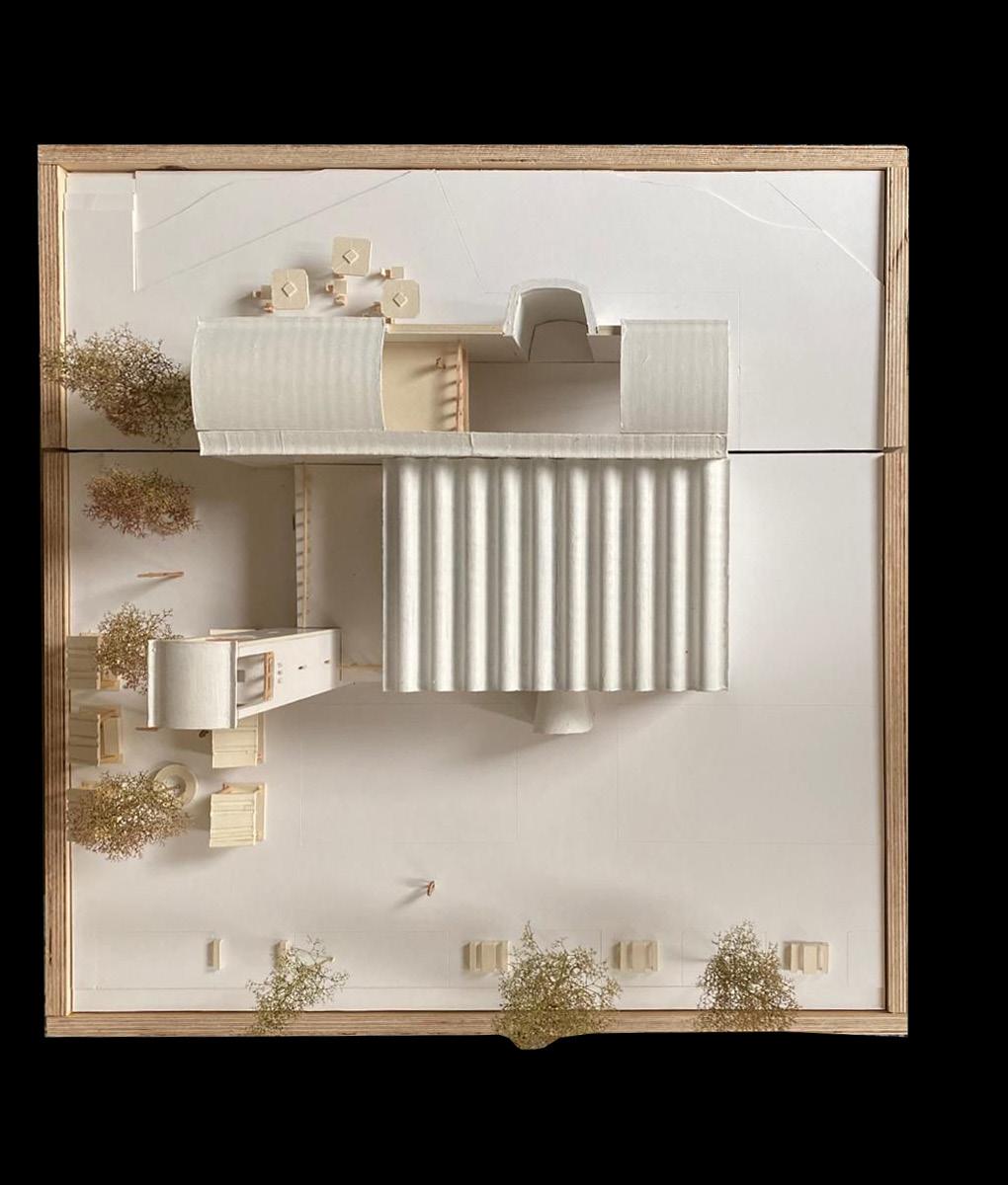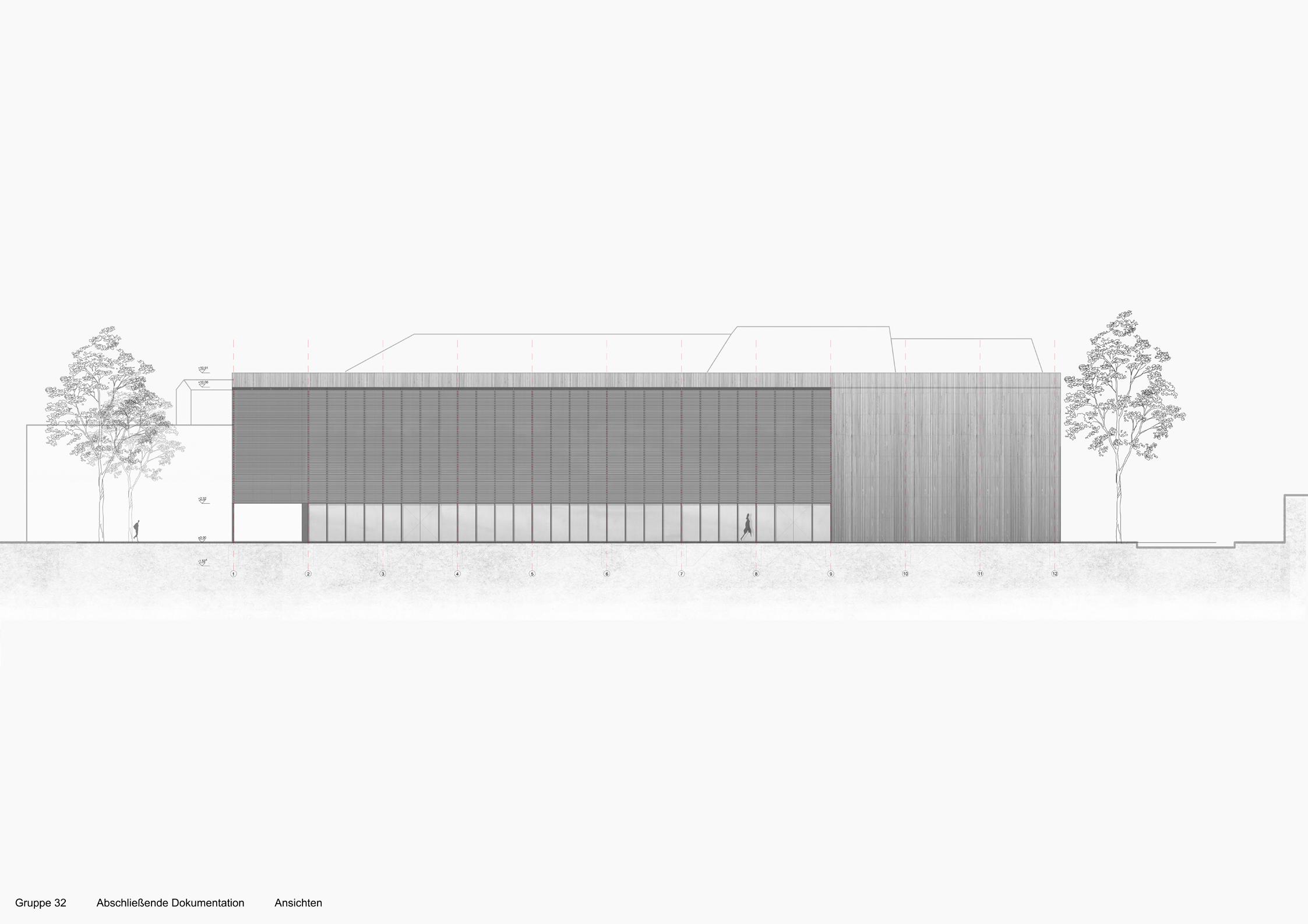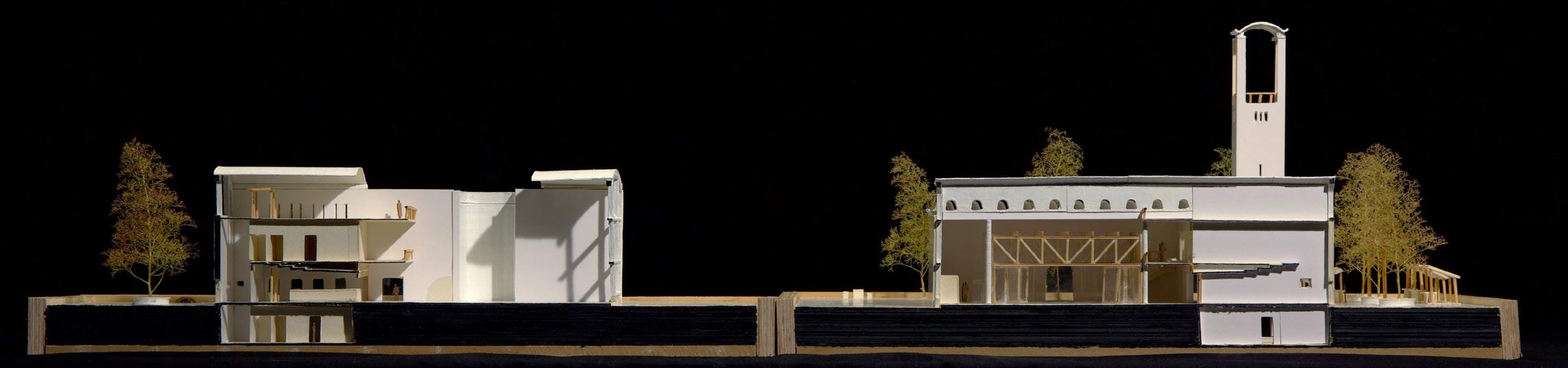 In dem städtebaulichen Konzept werden die Baukörper der Erweiterung des Haus Hörns, sowie das neue Oratorium, an der Ecke St. Sebastian - Ahornstraße angesiedelt. Diese entwickeln sich dann den Hang Richtung Süden herunter und vernetzen, zusammen mit der Landschaftsplanung, mehrere Nutzungsstrukturen. Die einzelnen Funktionen des Haus Hörns sind auf verschiedene Gebäude aufgeteilt. Das neue Oratorium hat eine öfft. zugängliches Erdgeschoss, sowie Angebote für die BeAnsicht Nord “Erweiterung Haus Hörn”