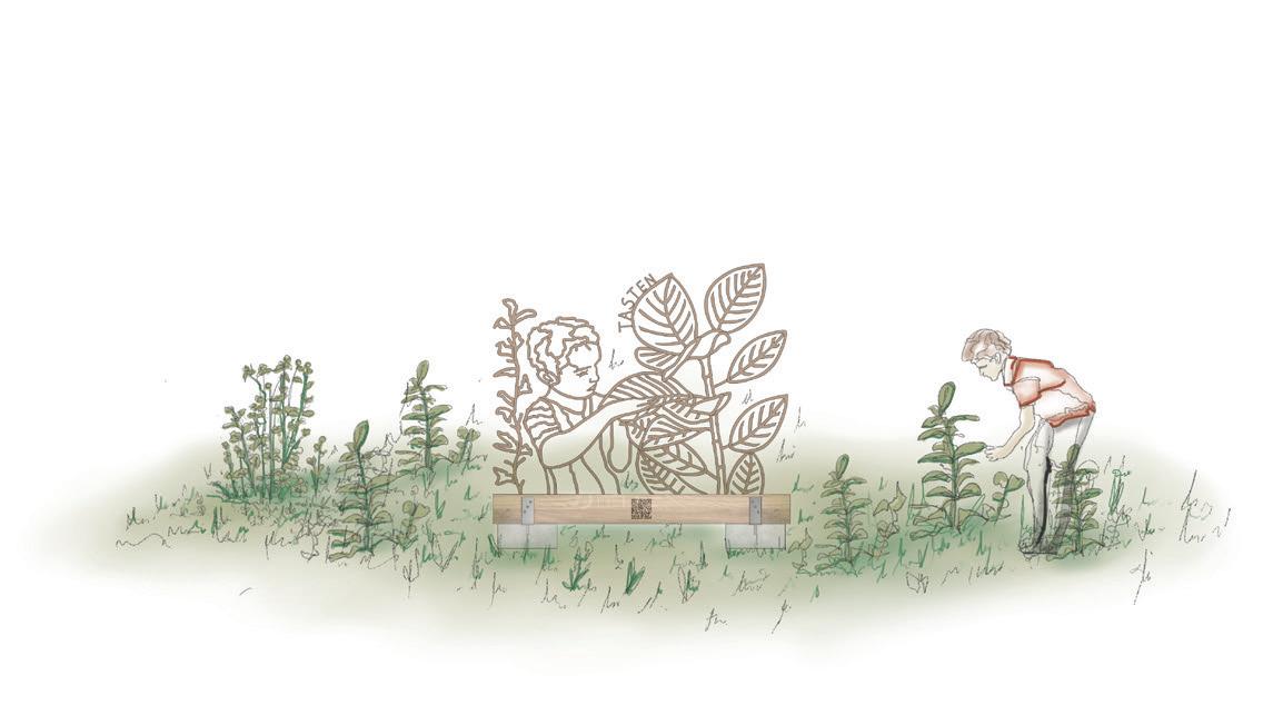 Auf diesen Balkentragwerken werden massive Holzbalken aus Eiche montiert, die nicht nur eine ästhetische, sondern auch eine funktionale Rolle spielen. Diese Eichenbalken bieten eine stabile Auflagefläche für die Anbringung der Reliefs. Die Reliefs selbst werden mit Holzdübeln auf den Eichenbalken befestigt, wodurch sie fest verankert sind und gleichzeitig eine natürliche Verbindung zwischen den verschiedenen Materialien geschaffen wird. Diese Konstruktionsweise stellt sicher, dass die Objekte auch unter widrigen Bedingungen sicher und beständig bleiben, während sie den Besuchern eine ästhetisch ansprechende und informative Darstellung der Pflanzen bieten.