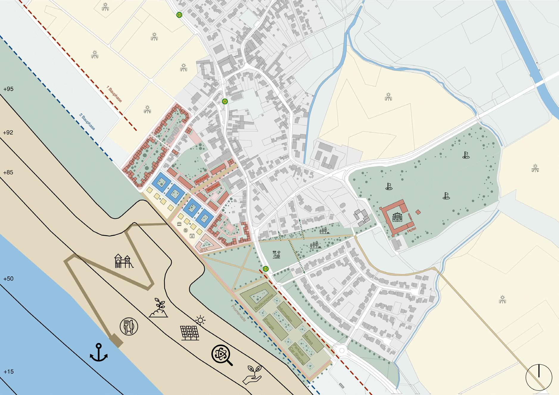 Der Strukturwandel im Rheinischen Revier stellt Planer*innen vor großen Herausforderungen. Die Braunkohletagebauten werden in den nächsten Jahren stillgelegt. Einige Orte sind davon besonders geprägt und betroffen, wie zum Beispiel der Ort Schophoven, der direkt an der Kante des Tagebaus liegt. Schophoven wird im Strukturwandel eines der ersten Dörfer sein, in denen Entwicklungsoptionen an eine zukünftige Seekante vorbereitet werden. Der Ort hat aufgrund der Lagegunst direkt am See ein herausragendes Zukunftspotential und stellt damit einen “Ort der Zukunft” im Rheinischen Revier dar.