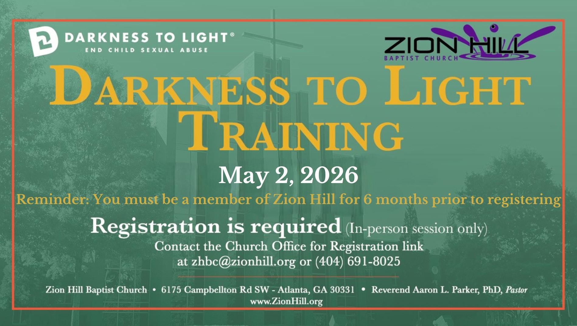 At Zion Hill Baptist Church, child safety remains a sacred priority. Under the umbrella of keeping all children safe, we offer Darkness to Light’s Stewards of Children child sexual abuse prevention training every month to equip adults with the knowledge to recognize, prevent, and appropriately respond to abuse concerns. In addition, our Youth & Children’s Policy is actively followed, regularly reviewed, and updated to ensure we continue providing a safe, nurturing, and accountable environment for