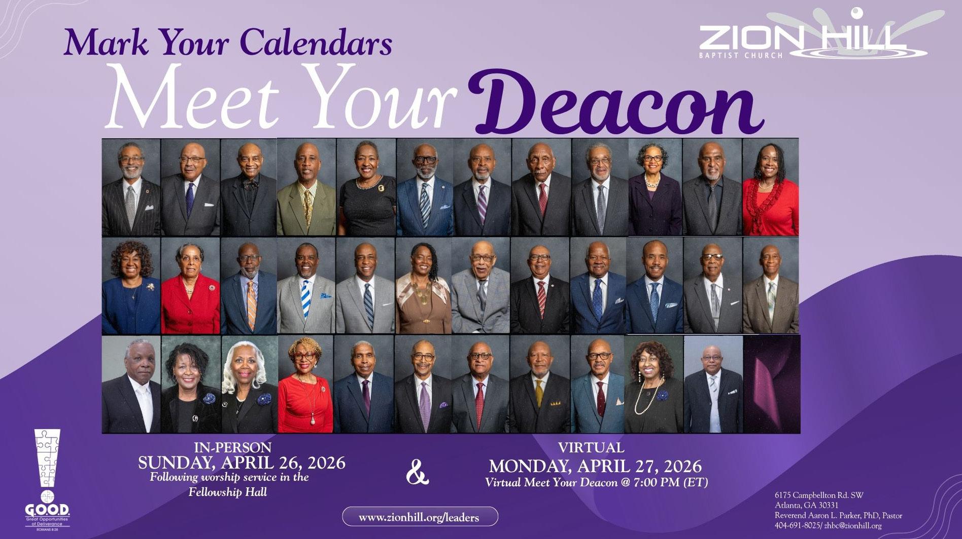 For additional details about any of the announcements, please call the church office at 404.691.8025 or email zhbc@zionhill.org.