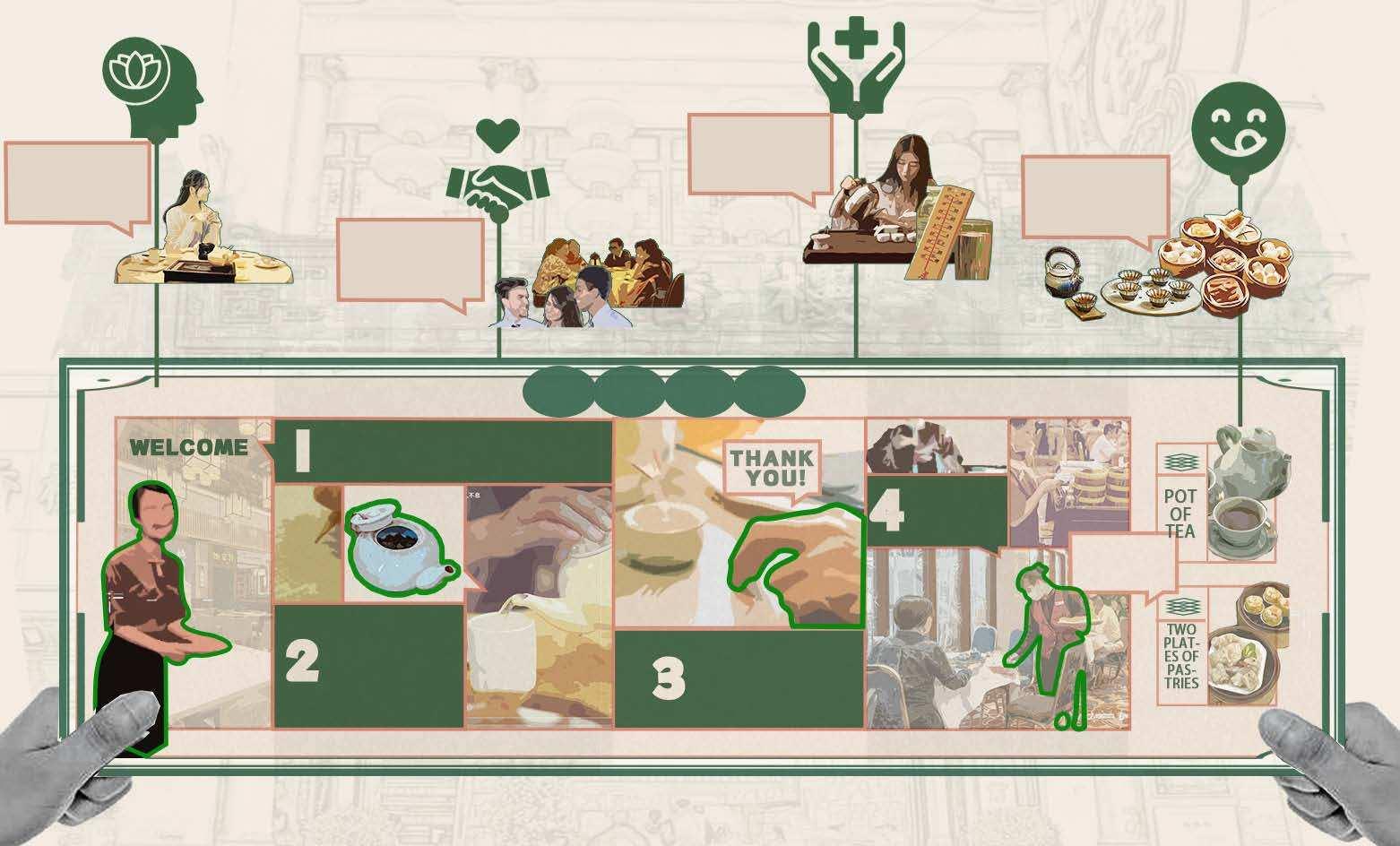 Inspired by the tradition of Cantonese morning tea, the project aims to address the fast-paced nature of modern society, where stress and isolation have become common. This interactive tea drinking device emphasizes the relaxing pace of tea drinking, emphasizing the social aspects that encourage meaningful connections and a slower paced lifestyle. This exploration of cultural heritage and rituals provides participants with an opportunity to break away from everyday life and foster an appreciation for the shared experience of tea. Guangdong morning tea