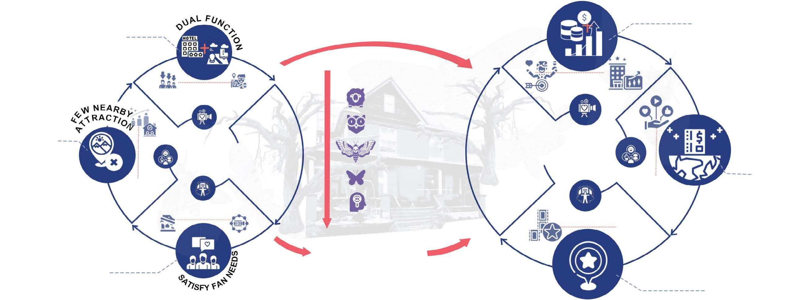 In the "Invasion Department," visitors explore the invasive behaviors of fans pursuing their idols, with the Ministry of Supervision addressing privacy violations. The space highlights the surveillance culture surrounding celebrities, where fans may stalk or intrude to obtain private information. The Vigilance section examines online violence fans sometimes use to defend their idols. The final area, "Confessional Ministry," encourages fans to reflect on their actions and promote personal growth.