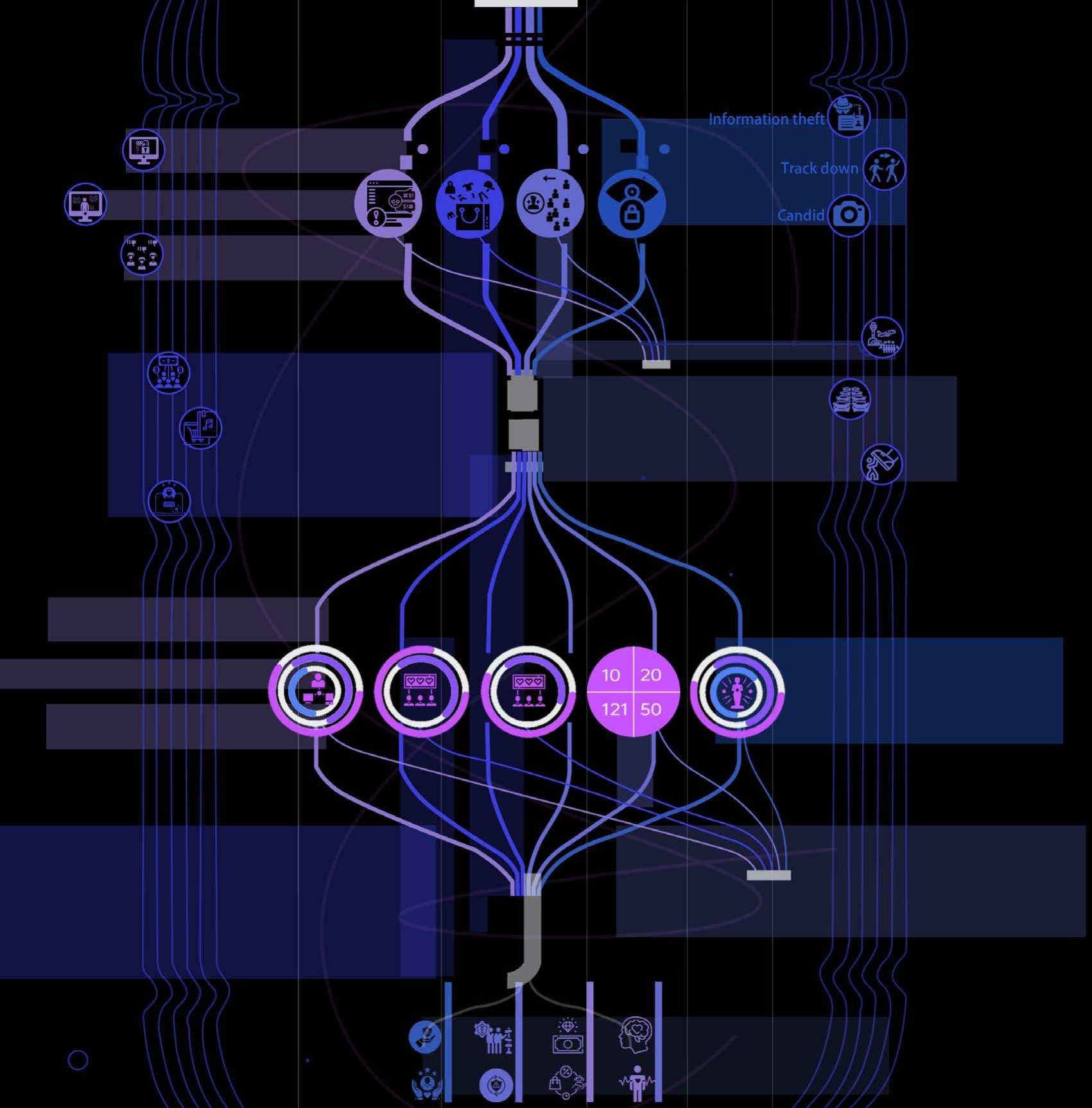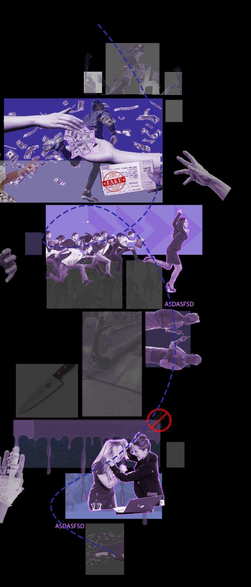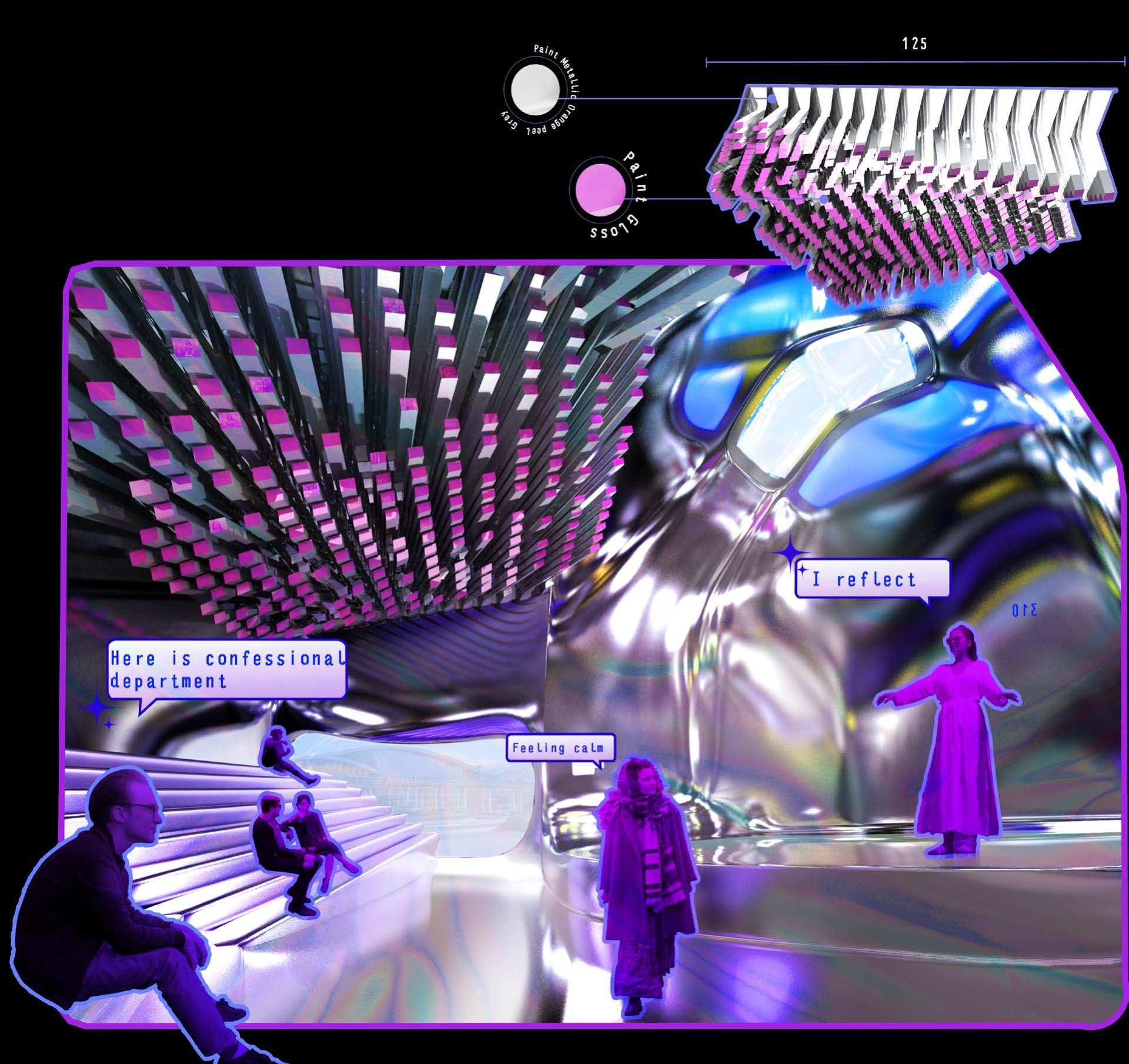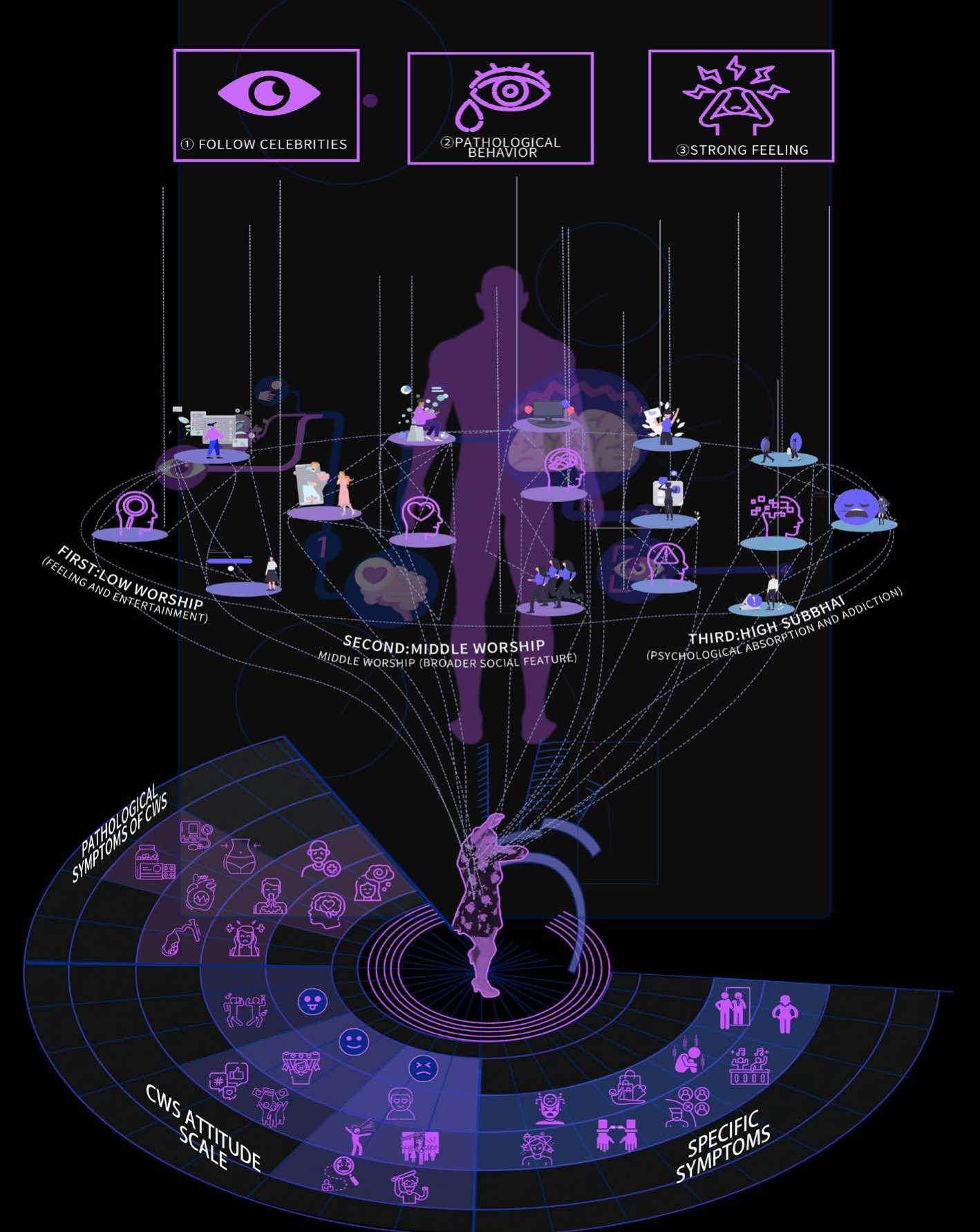 For the combination of five small Spaces, repeated and distorted methods are mainly used to carry out spatial deliberation. This space explores the online violence fans inflict on others in order to protect their idols. It can investigate how some fans engage in online harassment, bullying, or other forms of online violence against people who criticize or express different opinions about their favorite celebrities. Through pixelated cubicles and cyberbullying rhetoric.