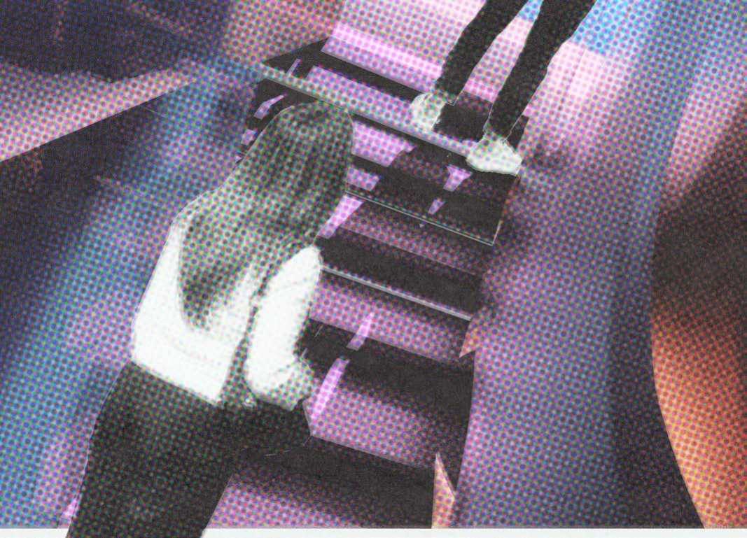 Audience sits on the swing device, the swing, high and low, the image also changes.