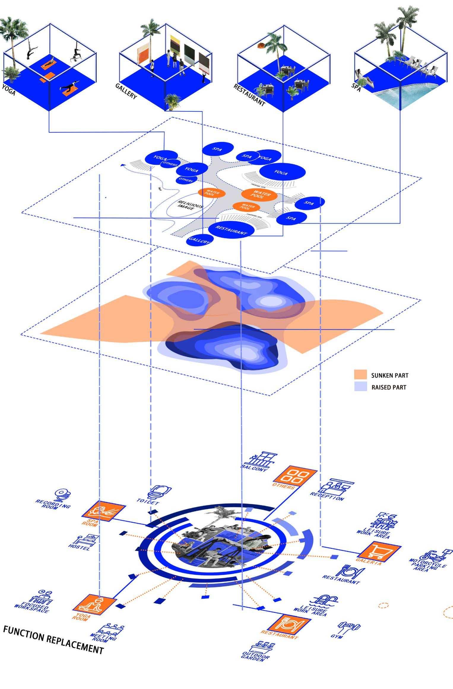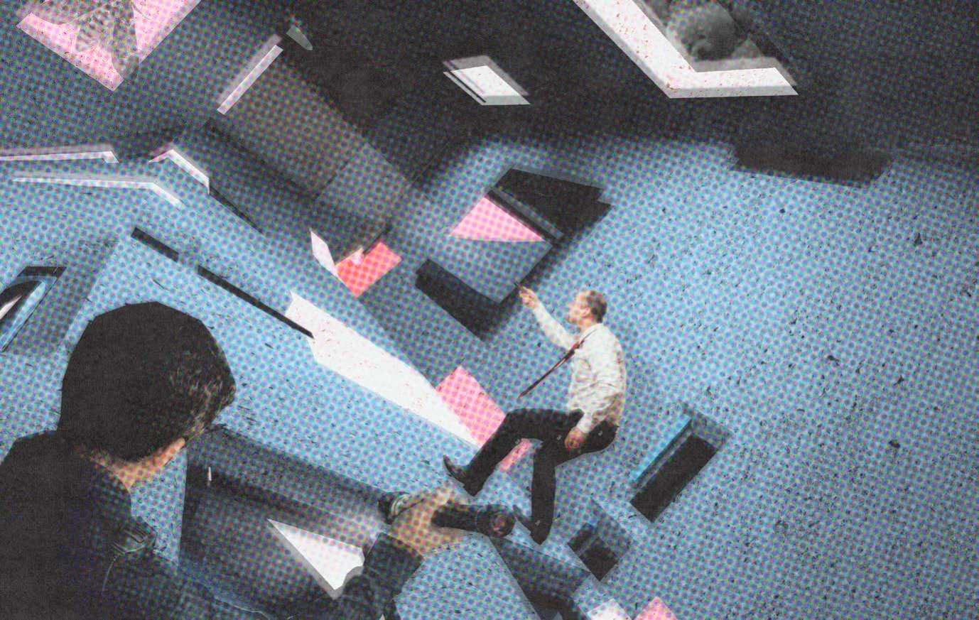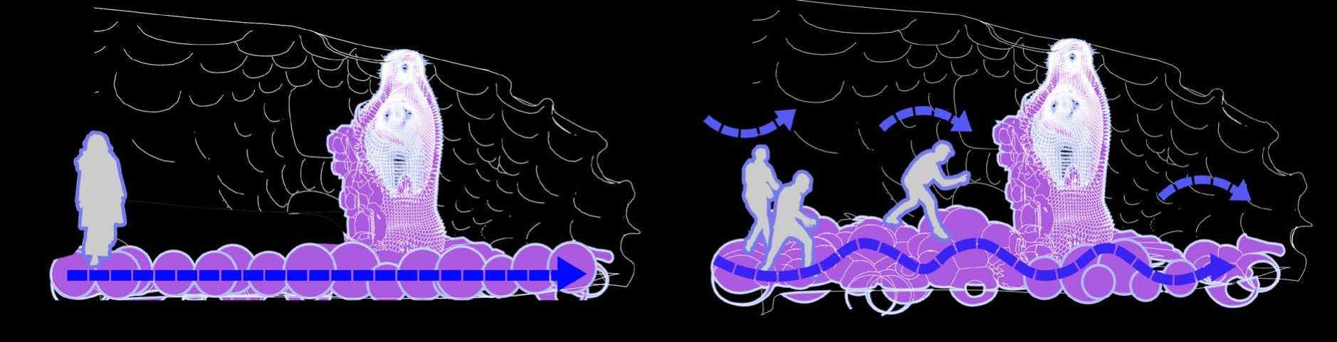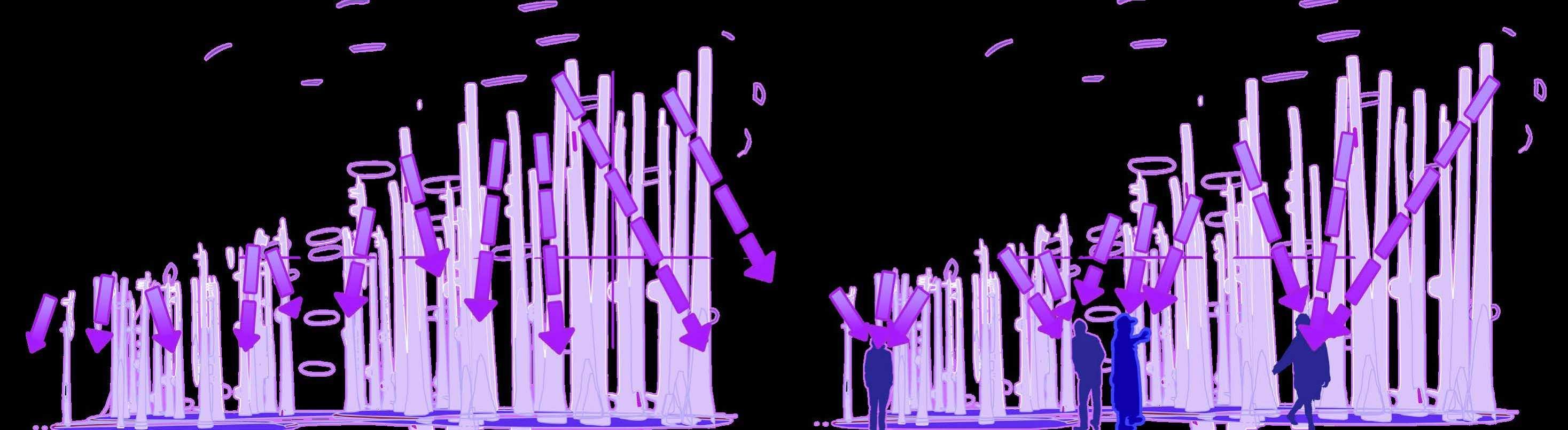 The overthrown structure of the space creates a sense of chaos, reflecting the behavior of