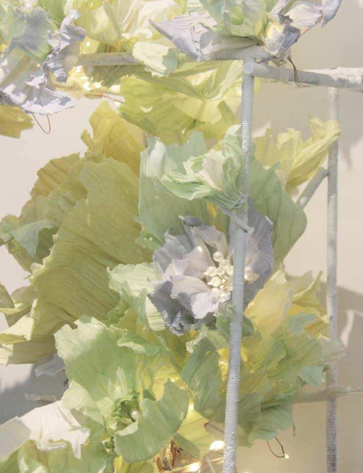 Paper artworks, wrinkle paper hardening, spray painting, combined with lighting effects, reflecting the vitality of spring