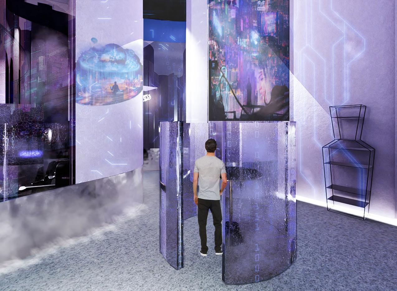 Recognizing the growing emphasis on body wellness and emotional health, I aim to design an innovative and versatile Metaverse gym in the heart of Glasgow. This cutting-edge space will combine traditional physical exercise areas with brain-sensory activities tailored for individuals with disabilities. Participants can connect and compete in immersive exercise challenges through interactive glass screens, where whisky-bottom digital avatars foster engagement and reduce the monotony often associated with conventional gyms.