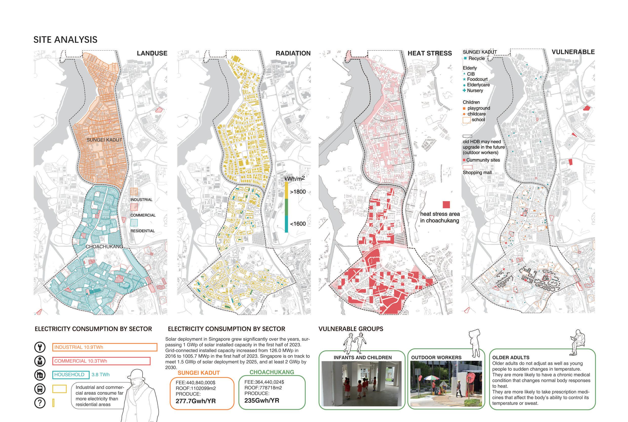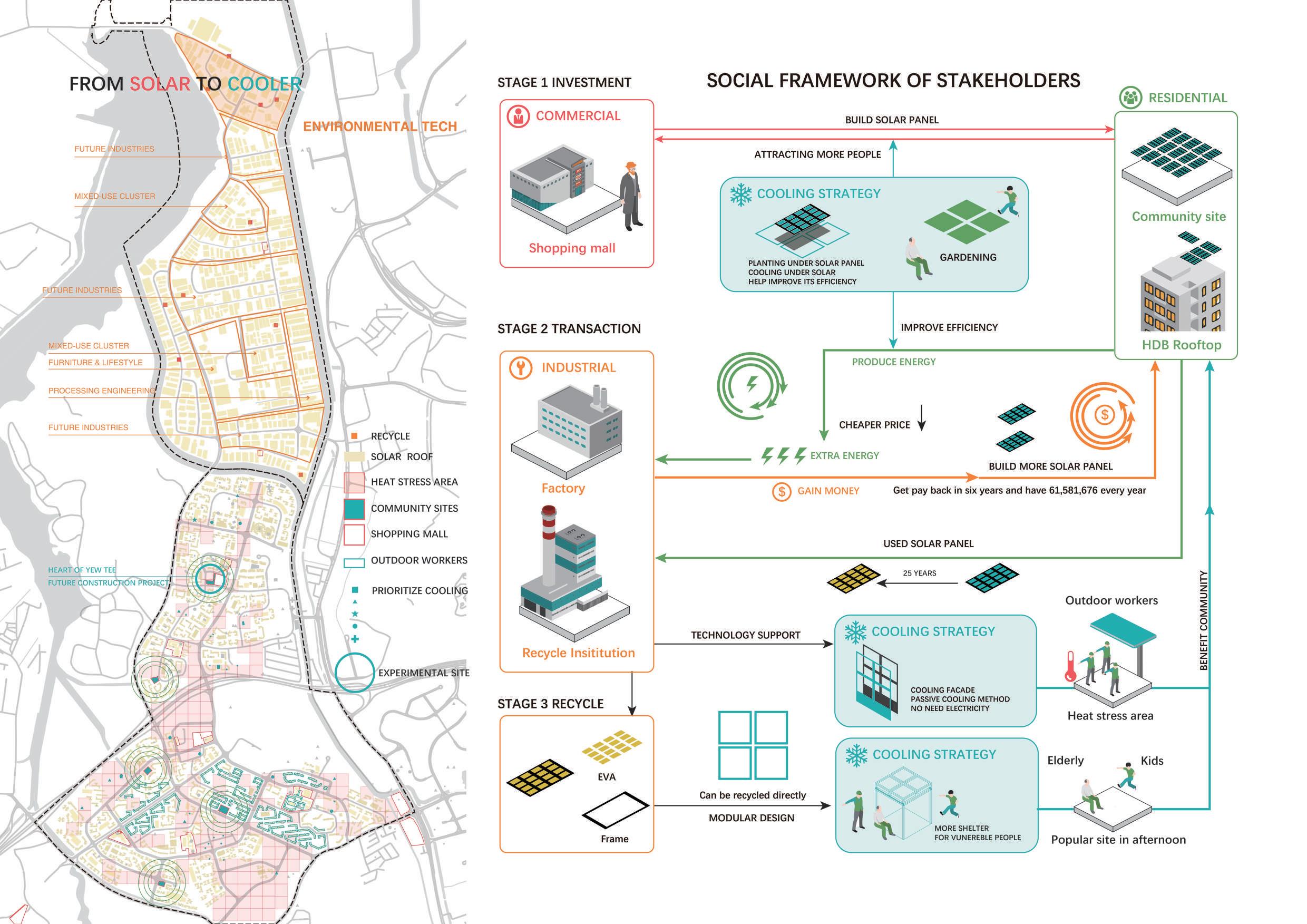 Given Singapore's tropical climate with year-round summer, protecting people vulnerable to heat stress is indeed a challenge. This project focuses on future solar energy development to mitigate heat stress among people. It utilizes vacant land within communities as a platform. The project aims to develop a system design that provides financial support and innovative land use strategies.