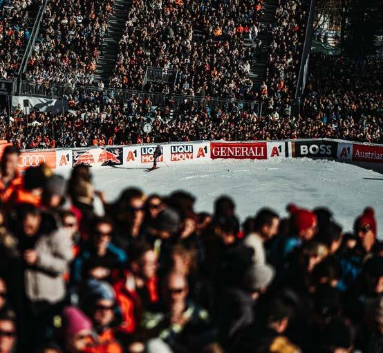Sichtbarkeit des Events zu erhöhen und ein digital-affines Publikum direkt anzusprechen. Gleichzeitig entsteht ein Multiplikatoreffekt: Die Inhalte werden geteilt, kommentiert und diskutiert, wodurch die Aufmerksamkeit über die eigenen Follower hinaus weiterwächst. Ein zusätzlicher Effekt zeigt sich bei der Besucherstruktur: Immer häufiger kommen insbesondere junge Gäste auf Empfehlung von Influencern zu den HahnenkammRennen. Ganze Familien reisen in die Gamsstadt, weil die Kinder ihre Lieblings-Internetstars live erleben – ein deutliches Zeichen dafür, wie stark diese Persönlichkeiten als Motivatorinnen und Motivatoren wirken.