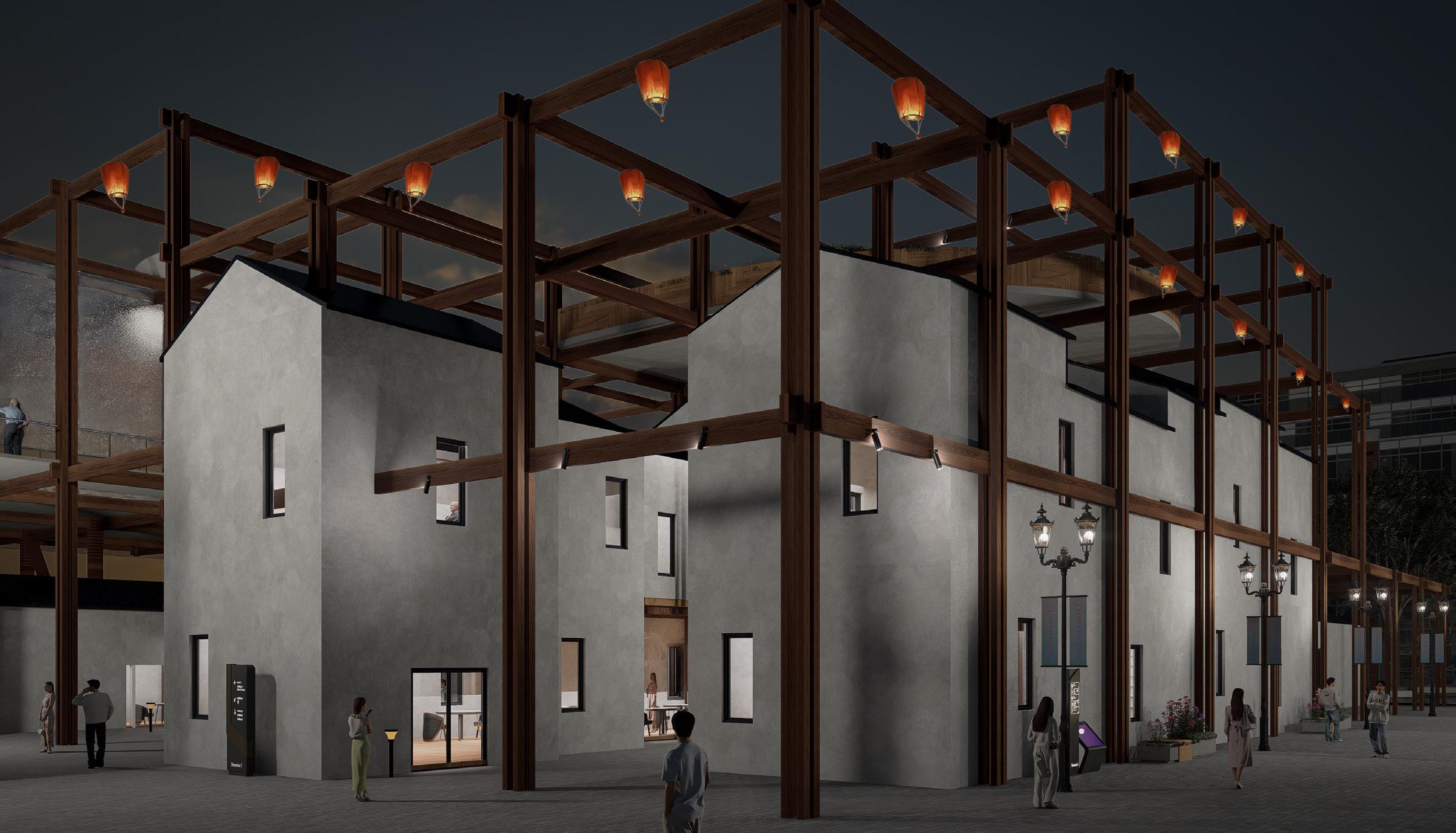 This project proposes a Semi-Open Jiangnan Culinary Cultural Hub for the historic Nanchang Street in Wuxi. The architectural concept executes a clear vertical material transformation to manifest the dialogue between heritage and innovation.