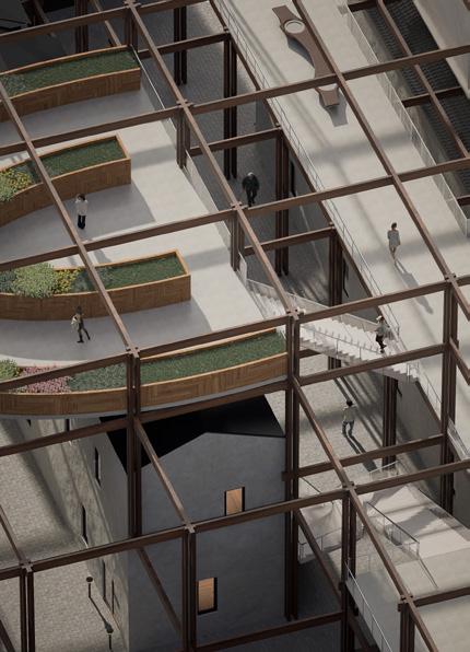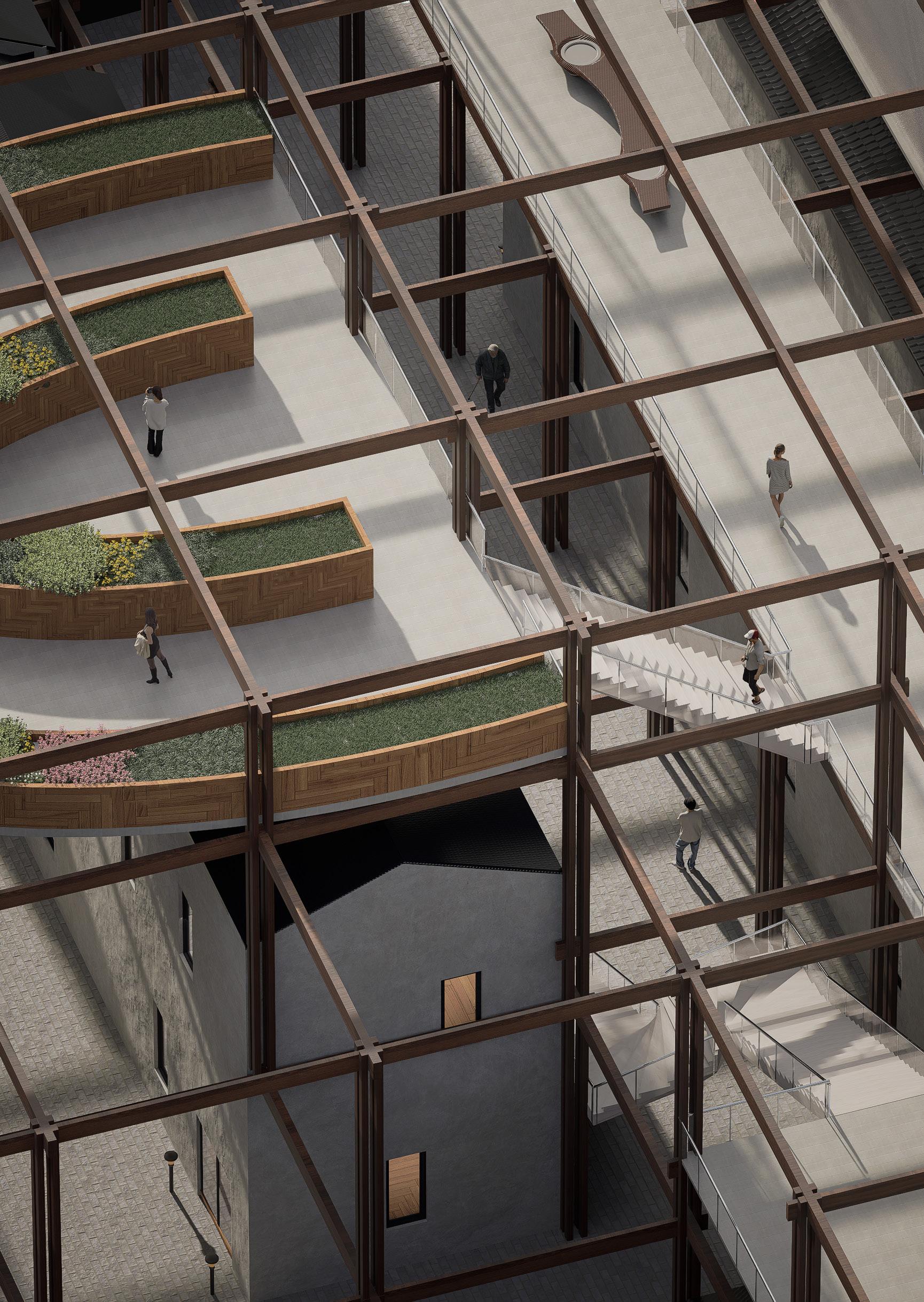 • Through immersive field research, analyzed the site's spatial and social patterns to design a key district node. The proposal balances traditional fabric with contemporary needs, translating historical elements into a modern design that enhances accessibility, engagement, and cultural continuity.
