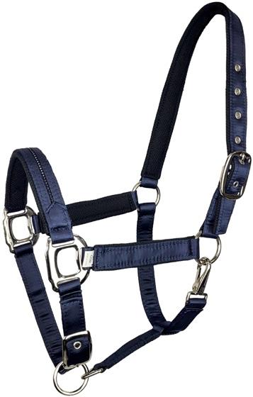 The Gloria Halter is a stylish statement piece, featuring an elegant satin finish and adorned with a diamante trim along the noseband. Made from cool, comfort fabric and designed with a convenient snap clip, it combines high quality with practicality.